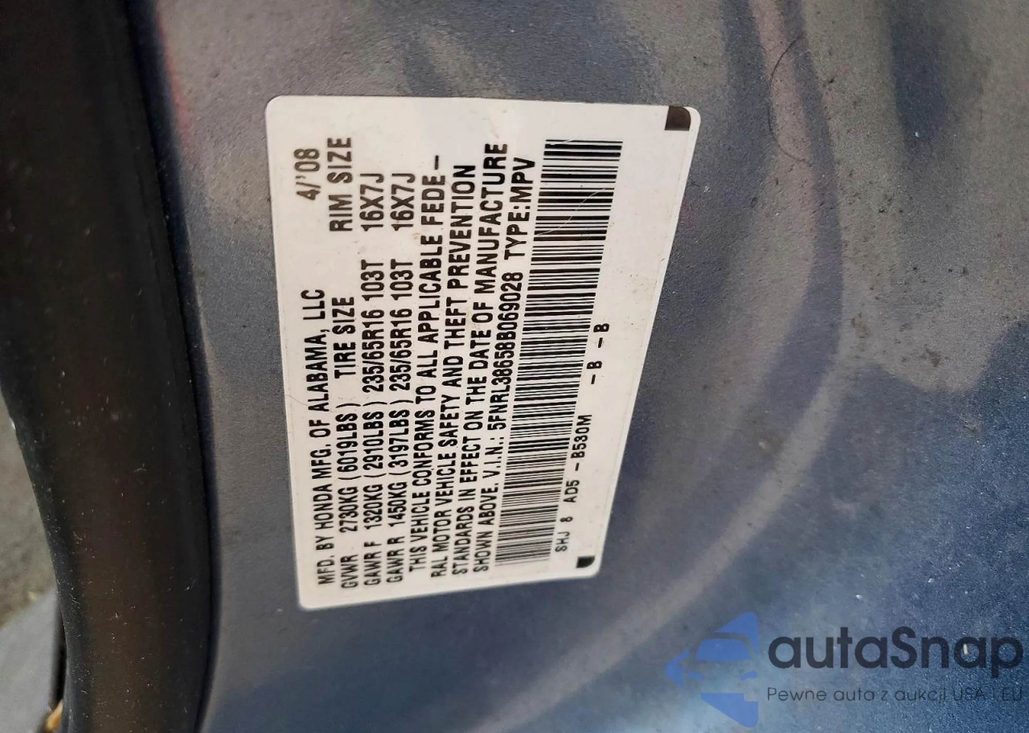 LOT: 78911945 VIN: 2A8HR54P08R609774