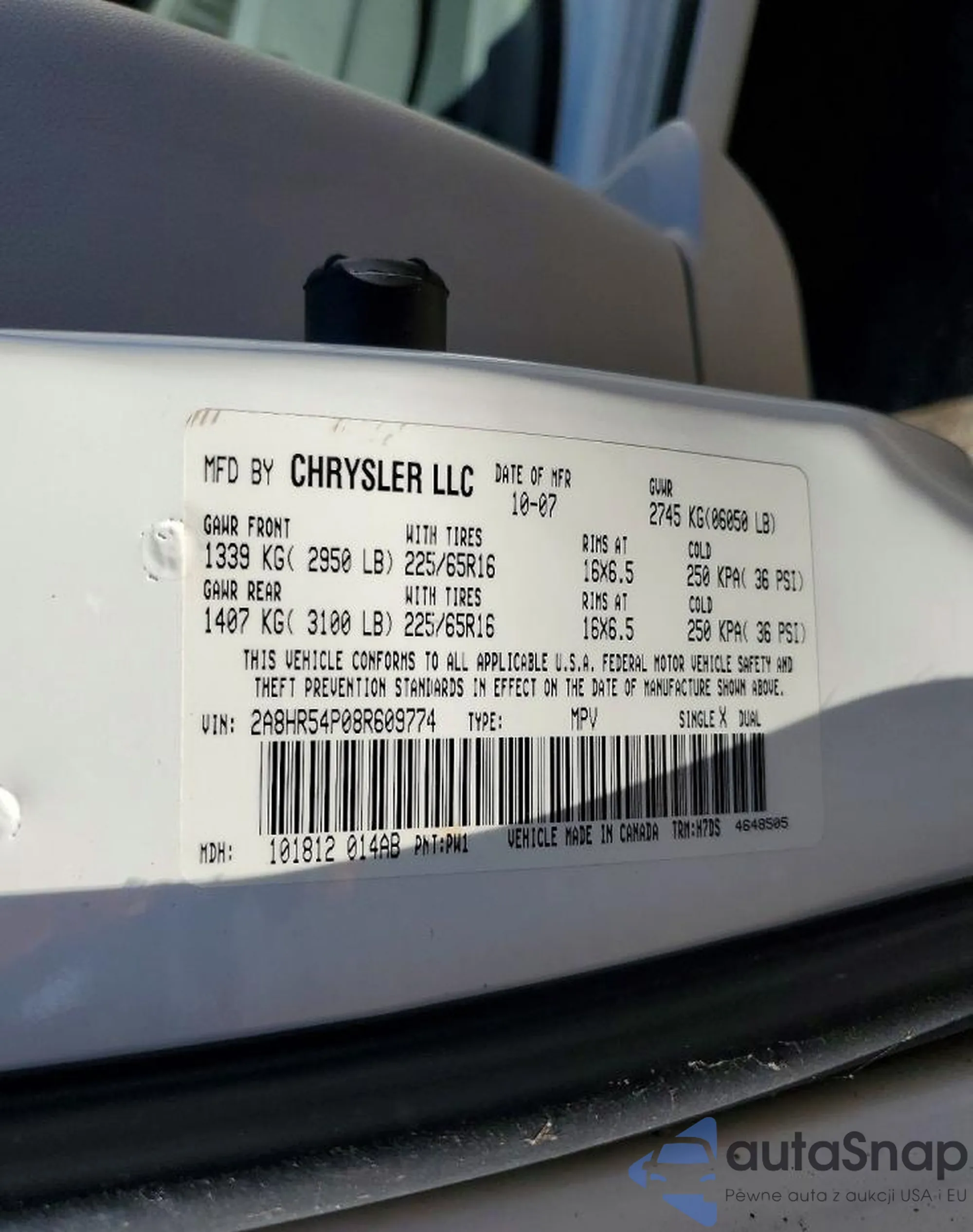• VIN 2A8HR54P08R609774