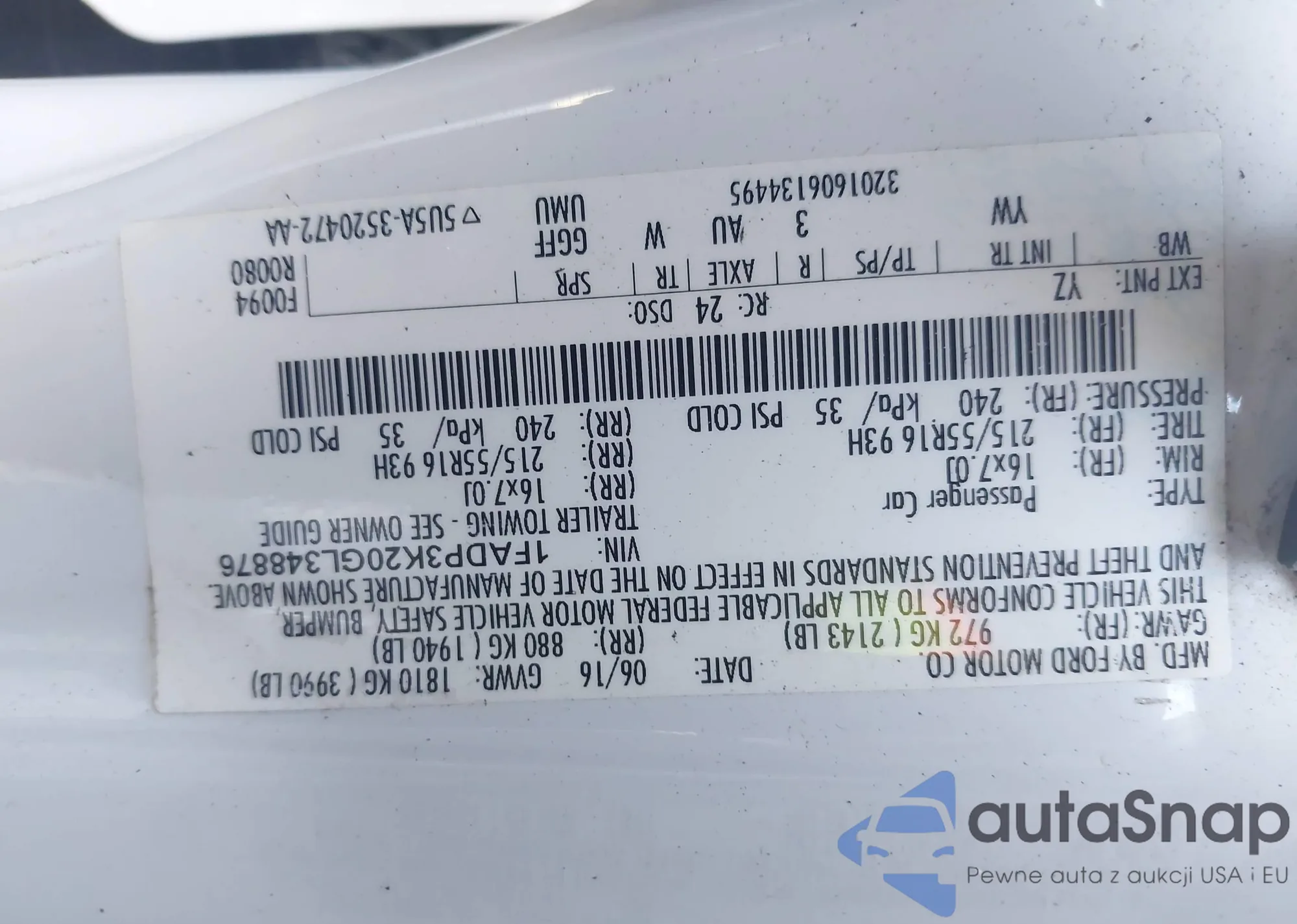 • VIN 1FADP3K20GL348876