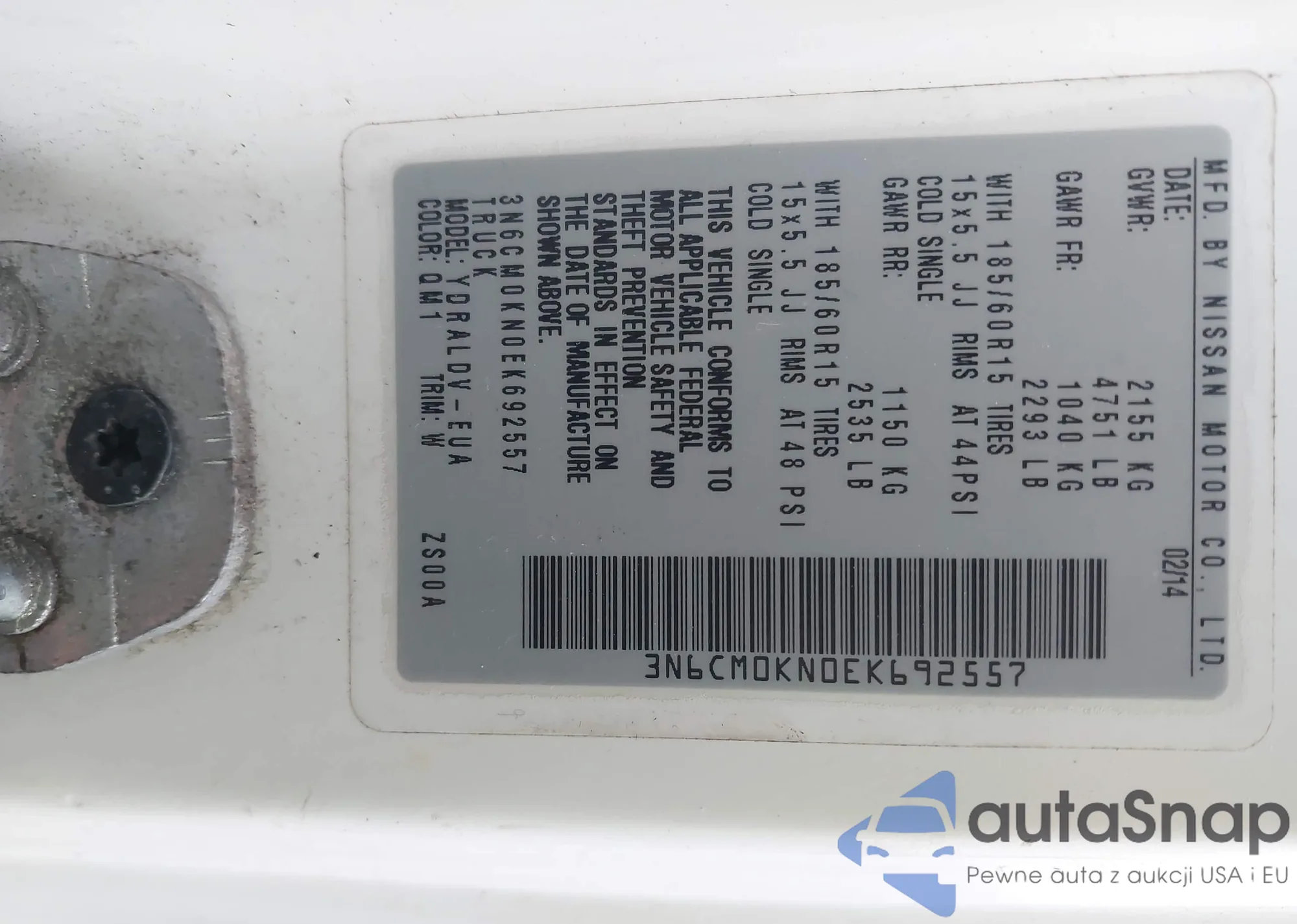 LOT: 44340219 VIN: 1G1JC5SH4E4159690