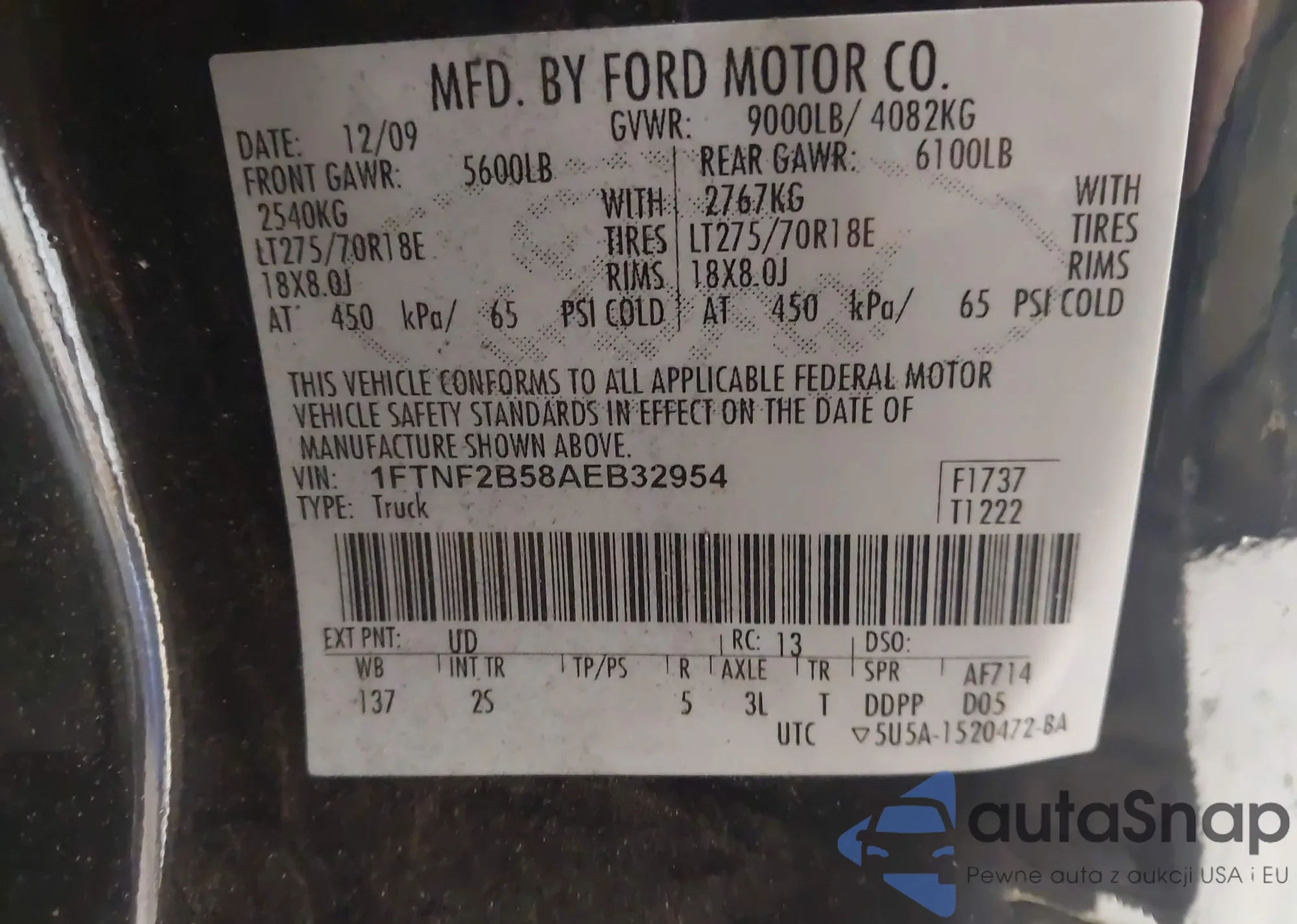 • VIN 1FTNF2B58AEB32954