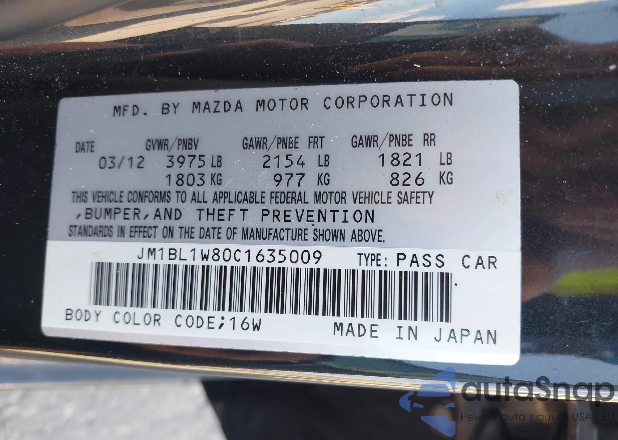 LOT: 44381400 VIN: JM1BL1W80C1635009