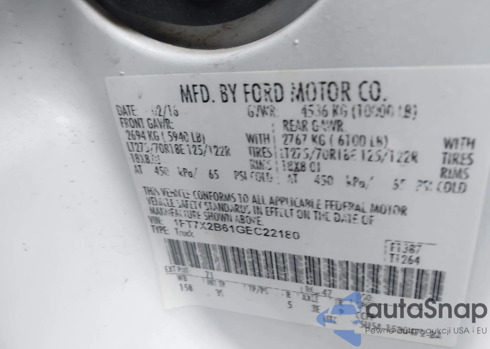 • VIN 1FT7X2B61GEC22180
