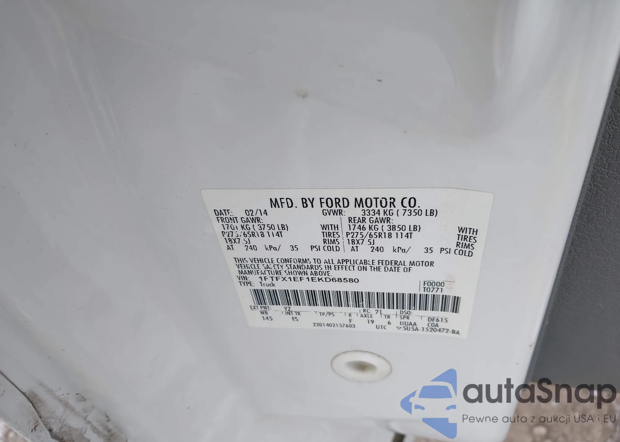 • VIN 1FTFX1EF1EKD68580