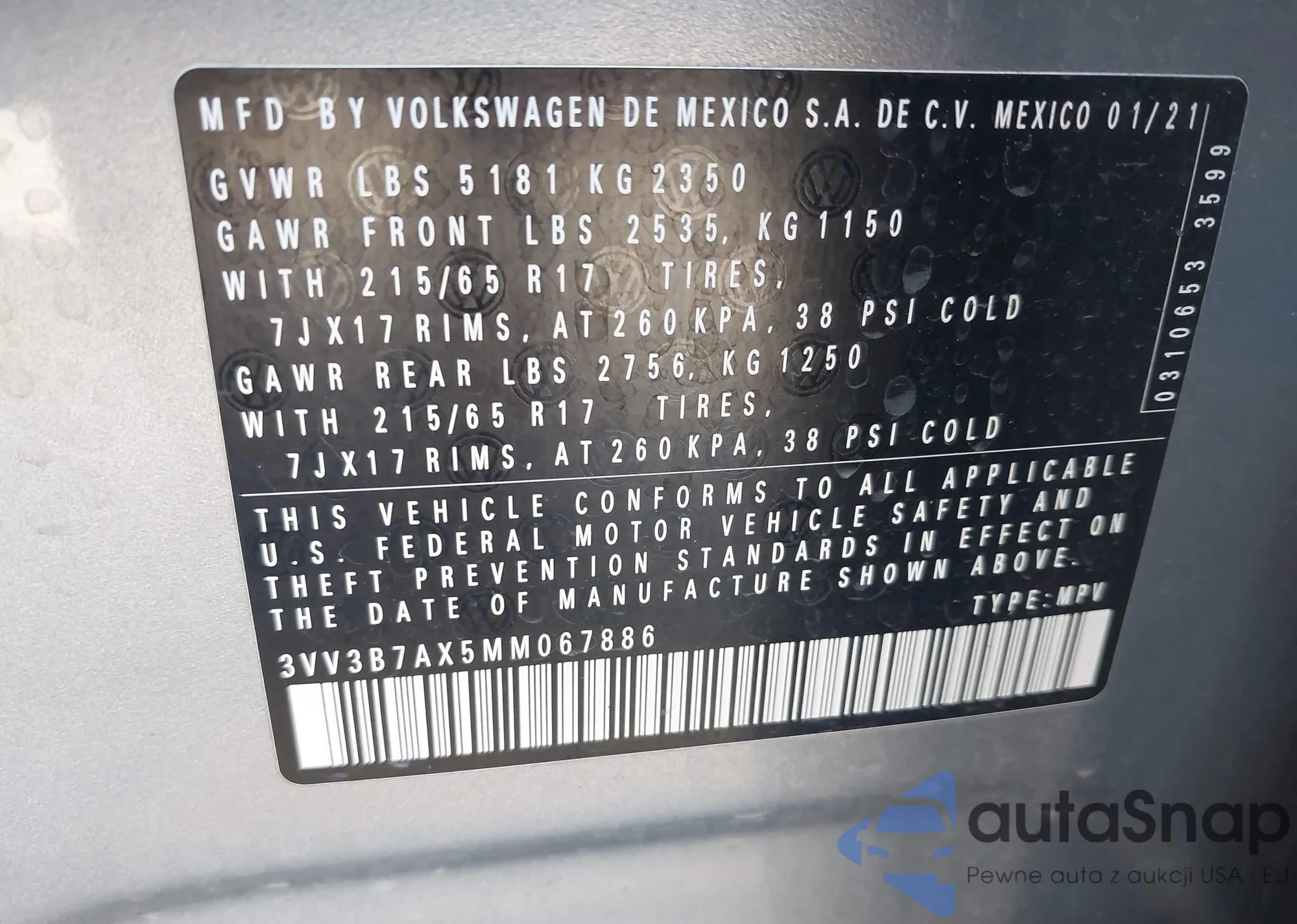 • VIN 3VV3B7AX5MM067886