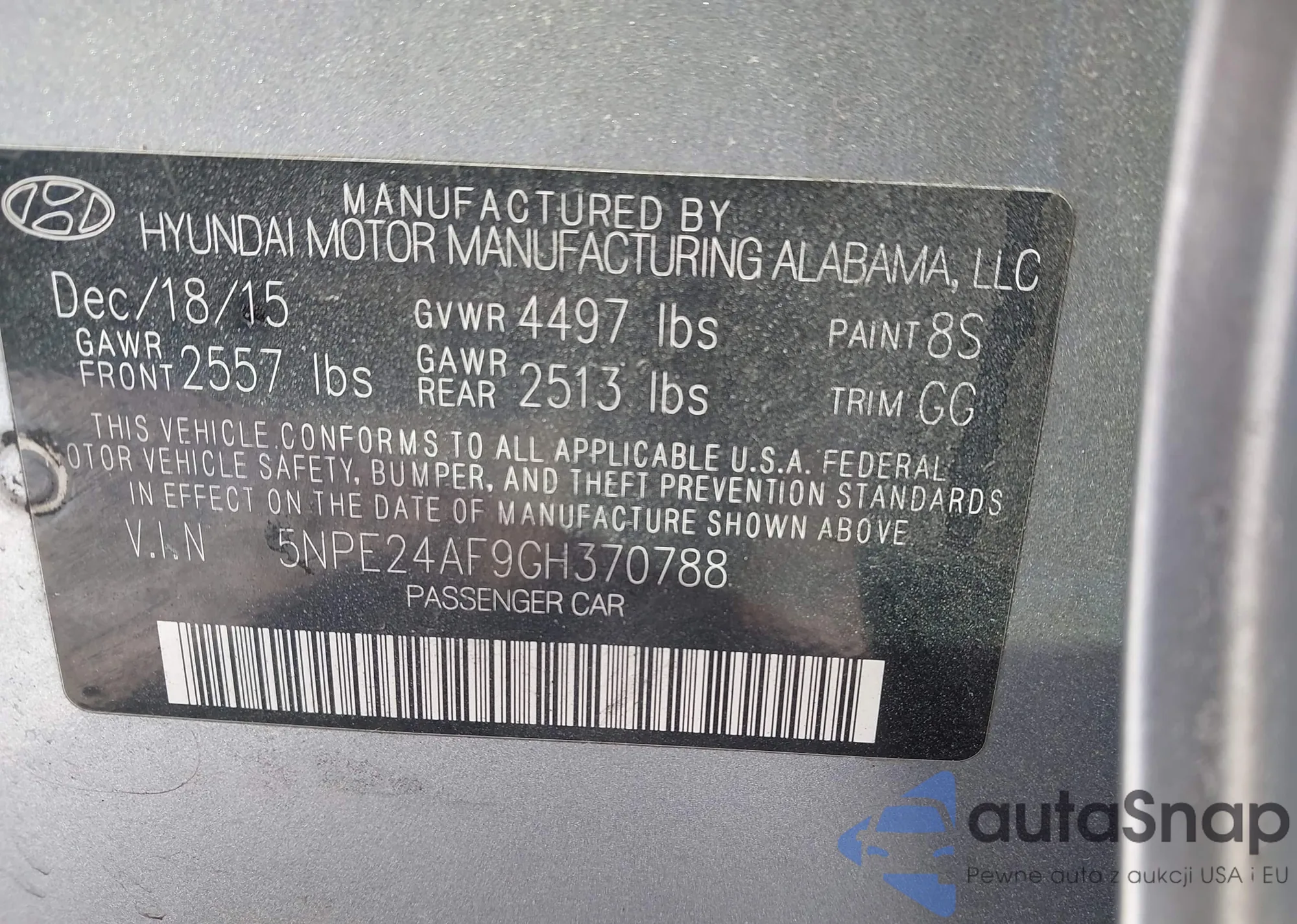 • VIN 5NPE24AF9GH370788