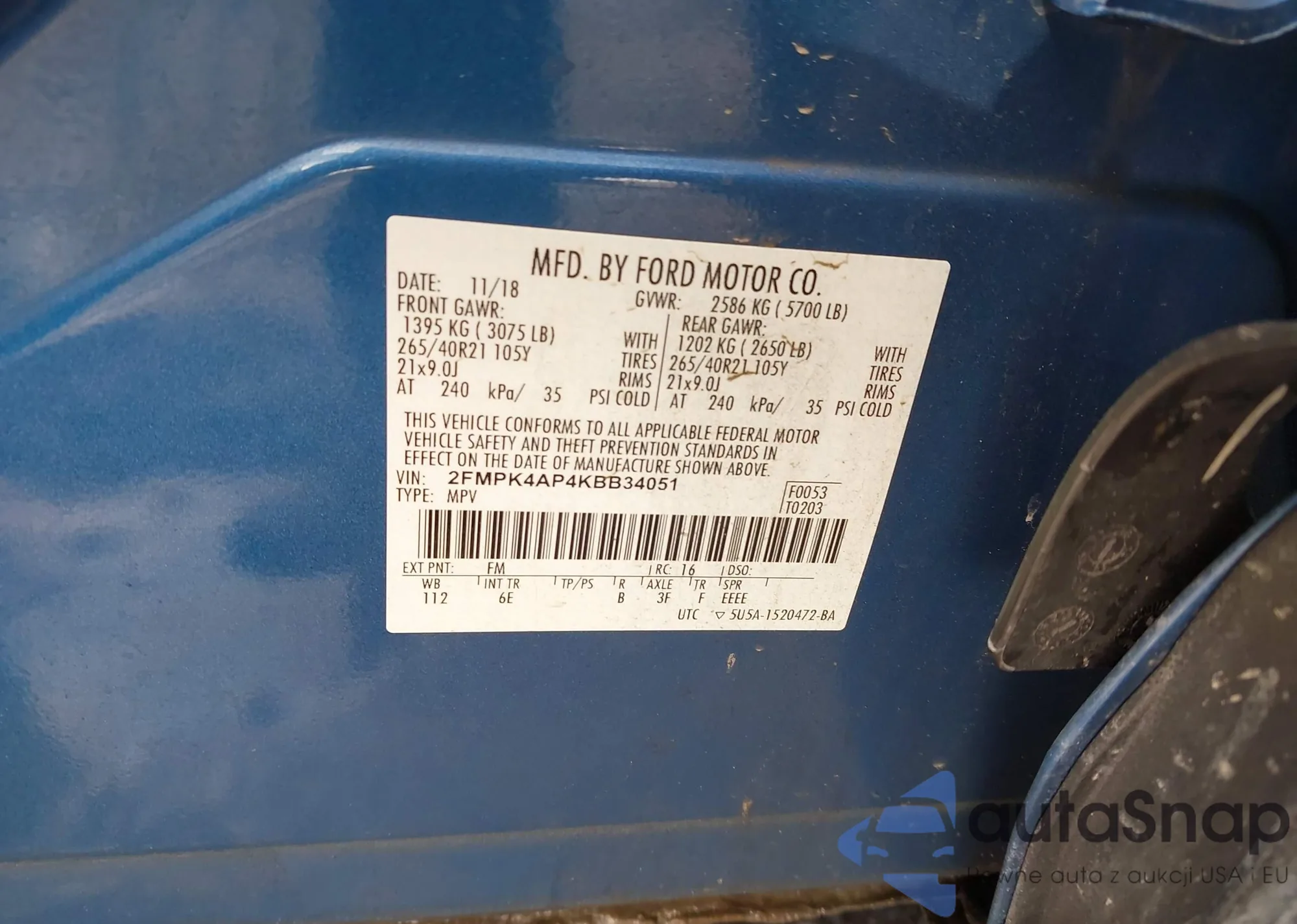 • VIN 2FMPK4AP4KBB34051
