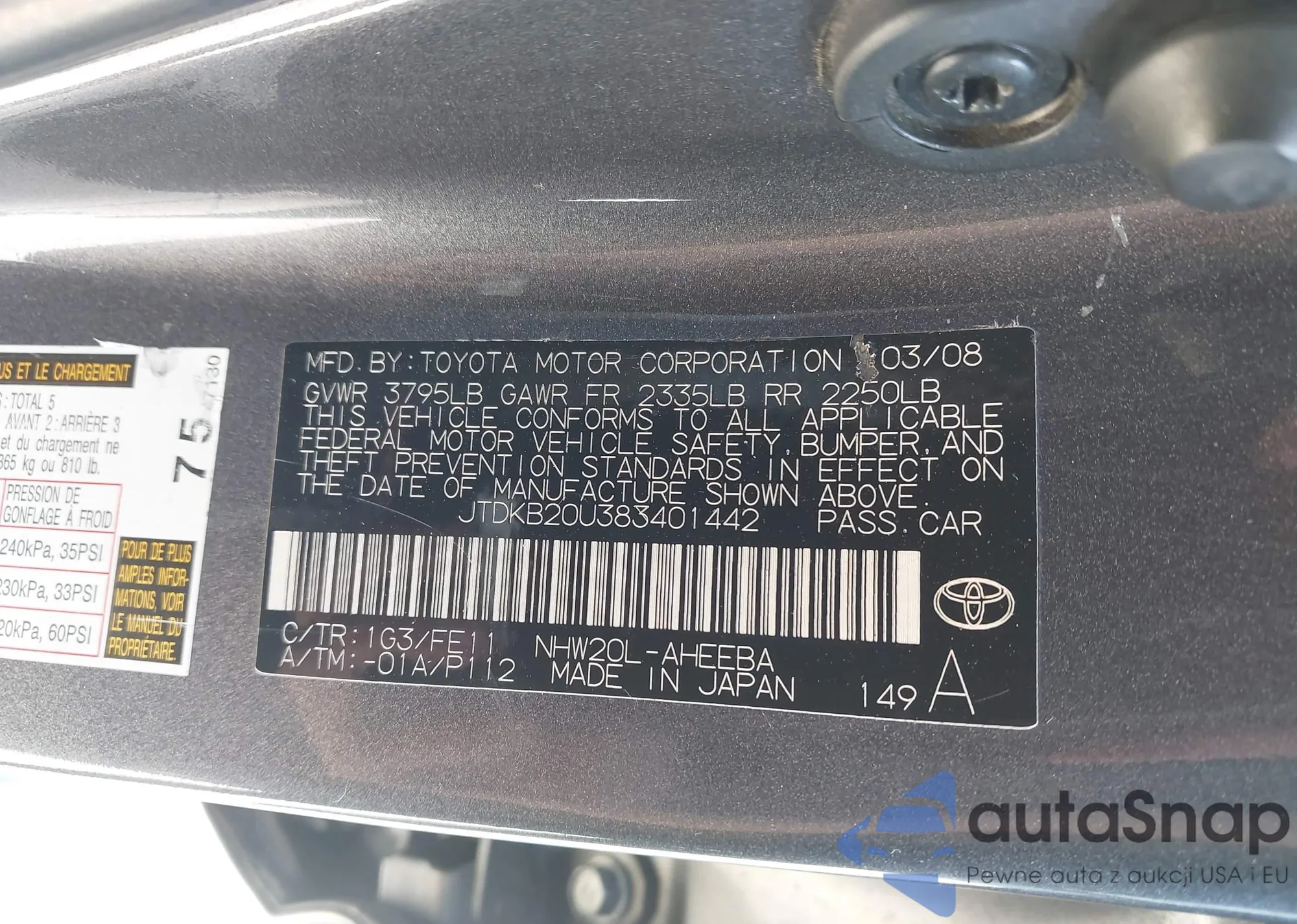 • VIN JTDKB20U383401442