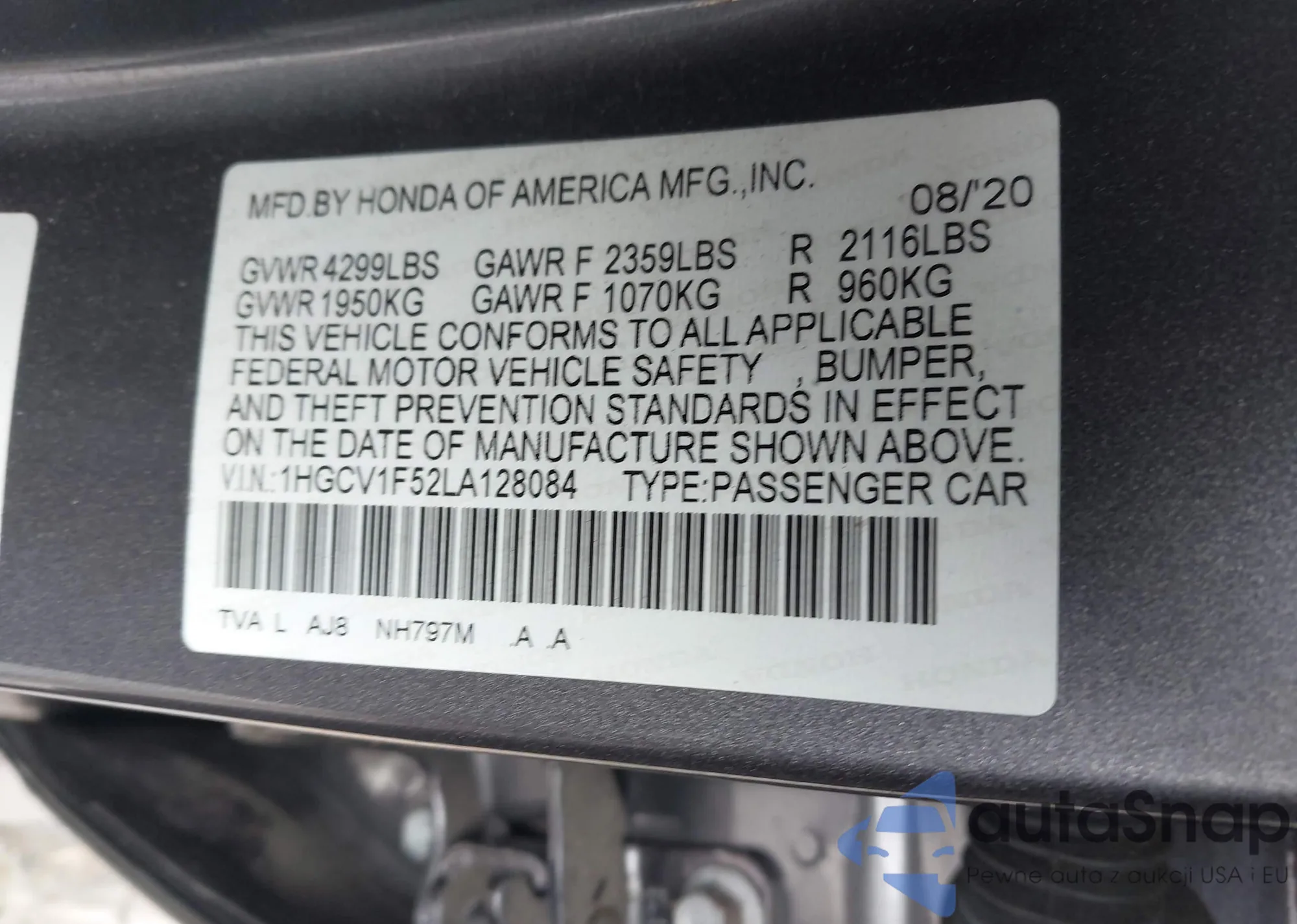 LOT: 44515948 VIN: 1HGCV1F52LA128084