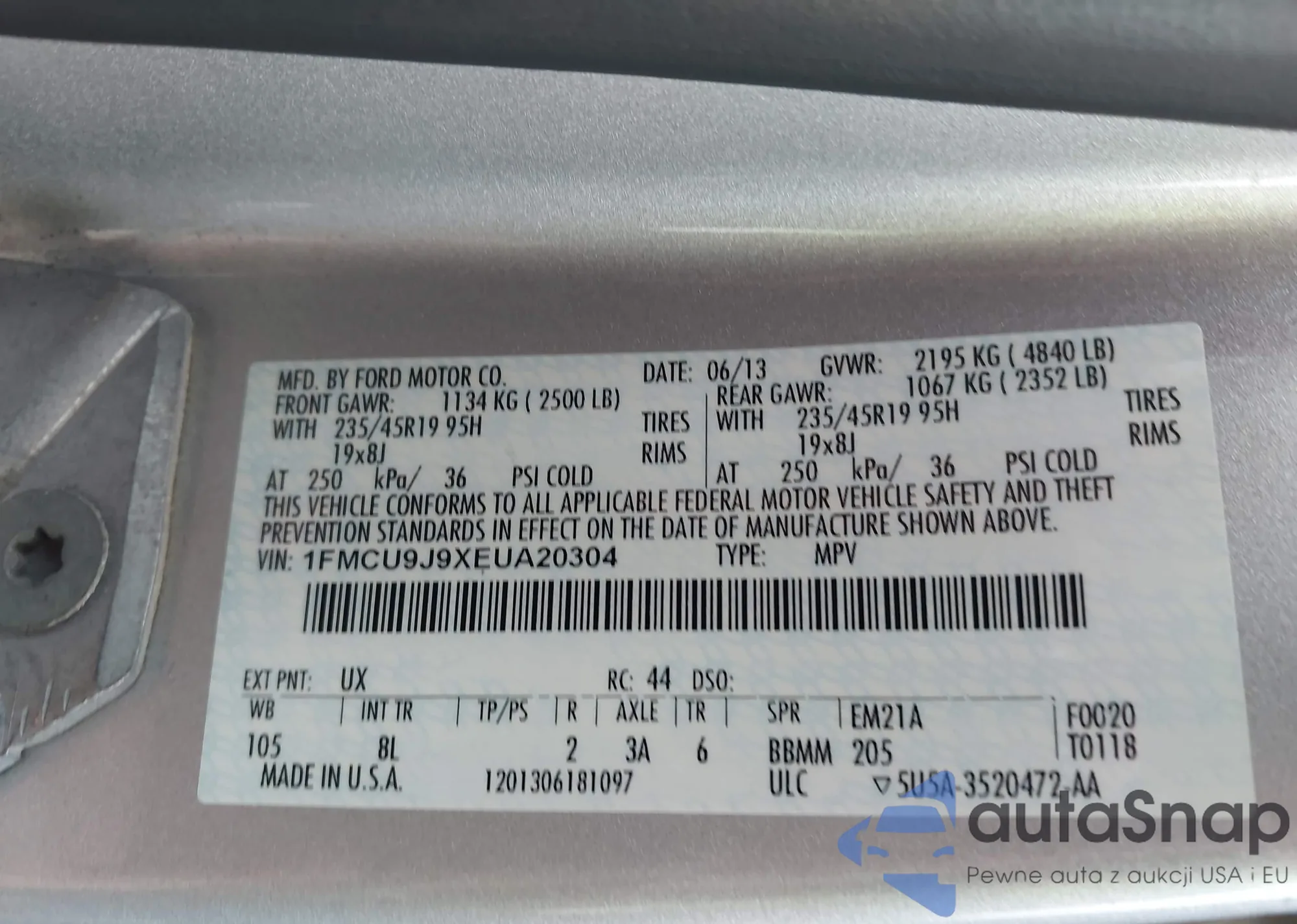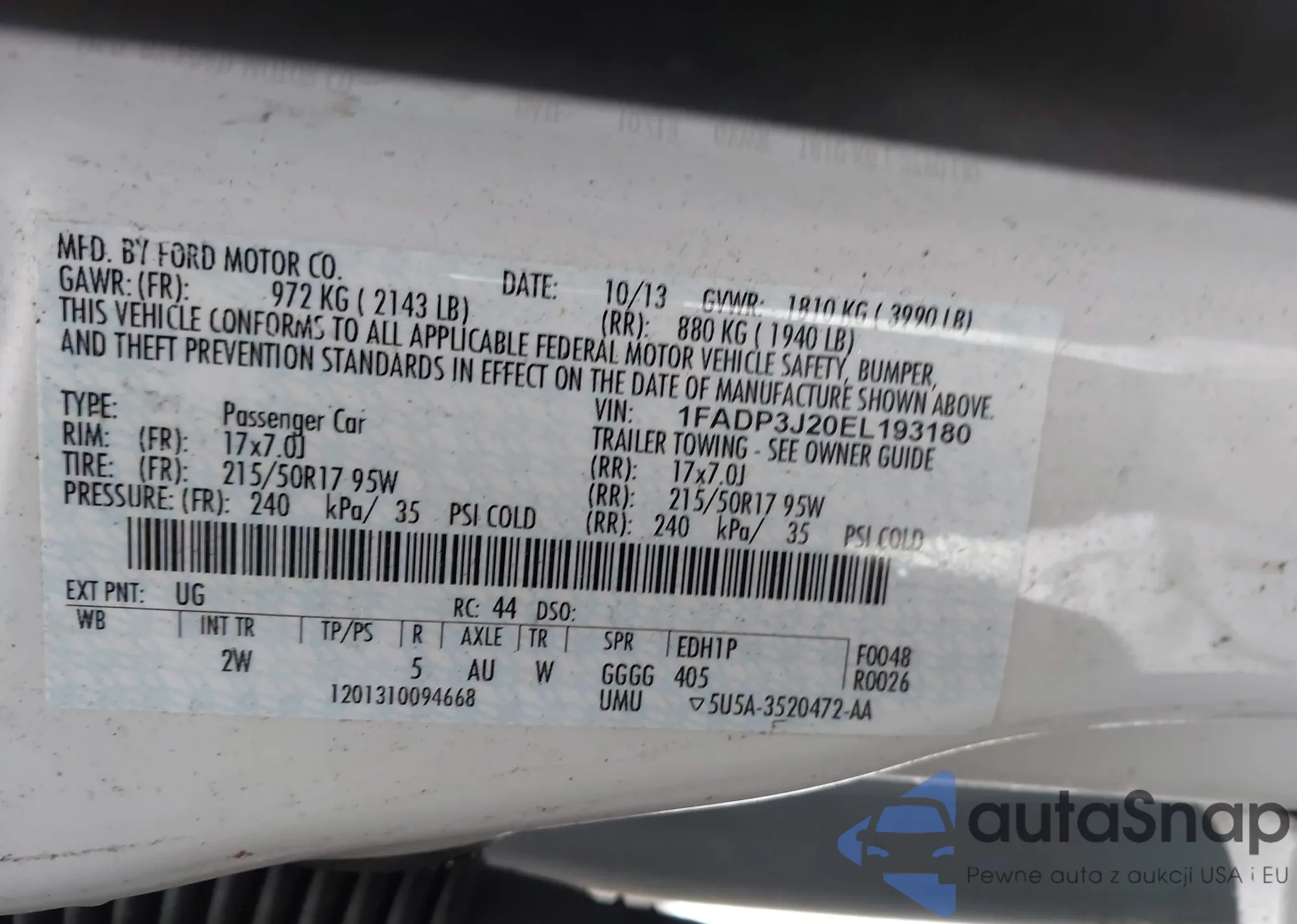 LOT: 44333252 VIN: 1FADP3N26DL105807