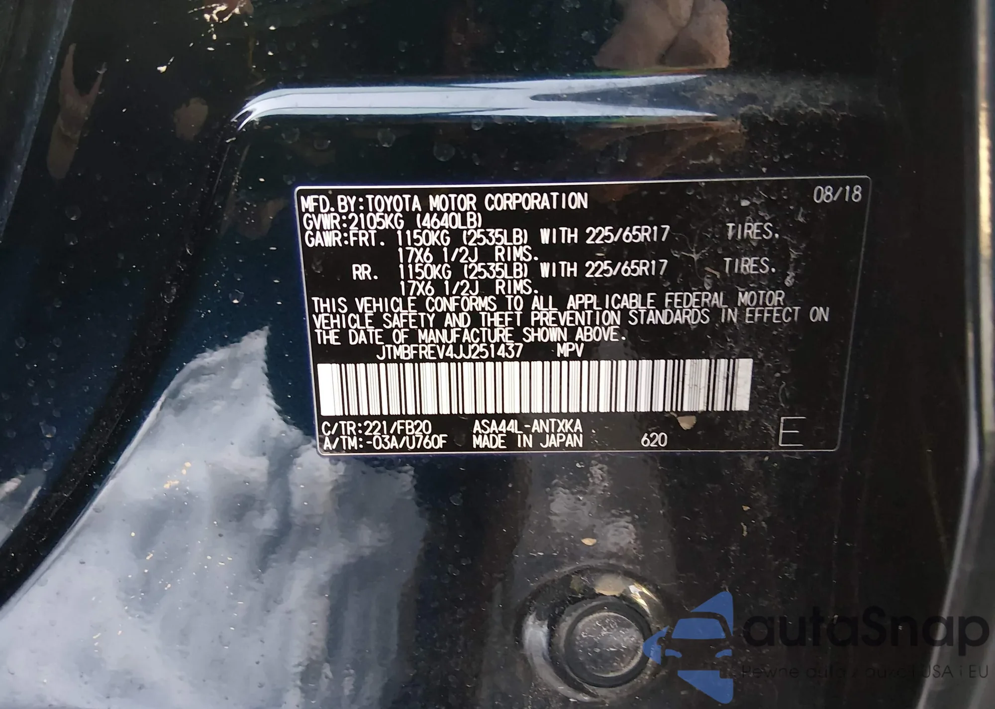 • VIN JTMBFREV4JJ251437