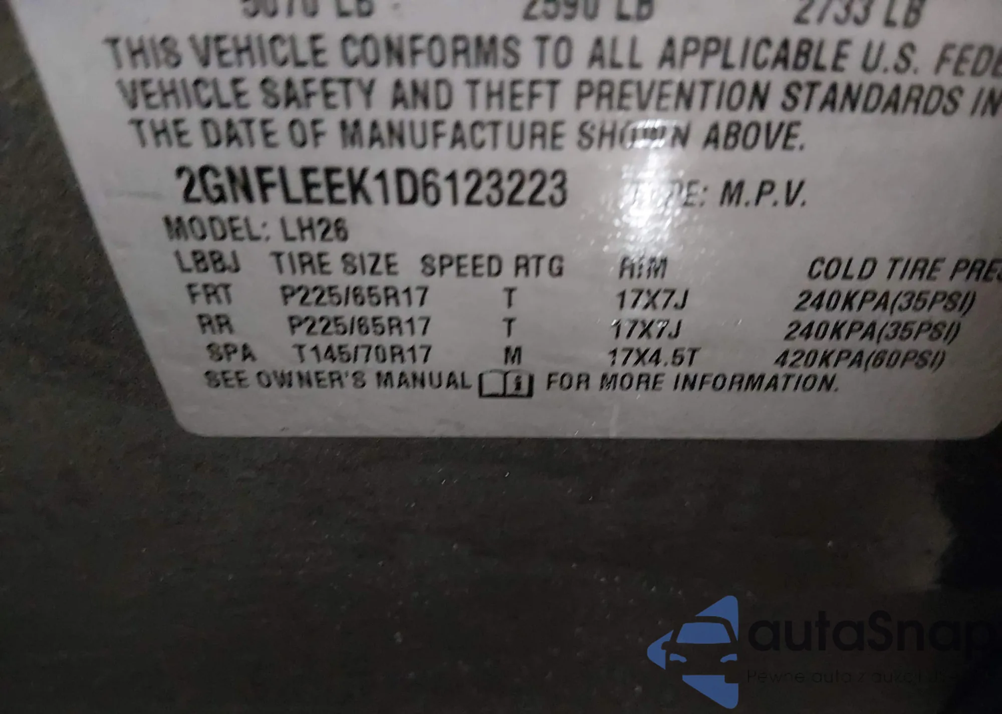 LOT: 44378379 VIN: JF1GPAS68DH207024