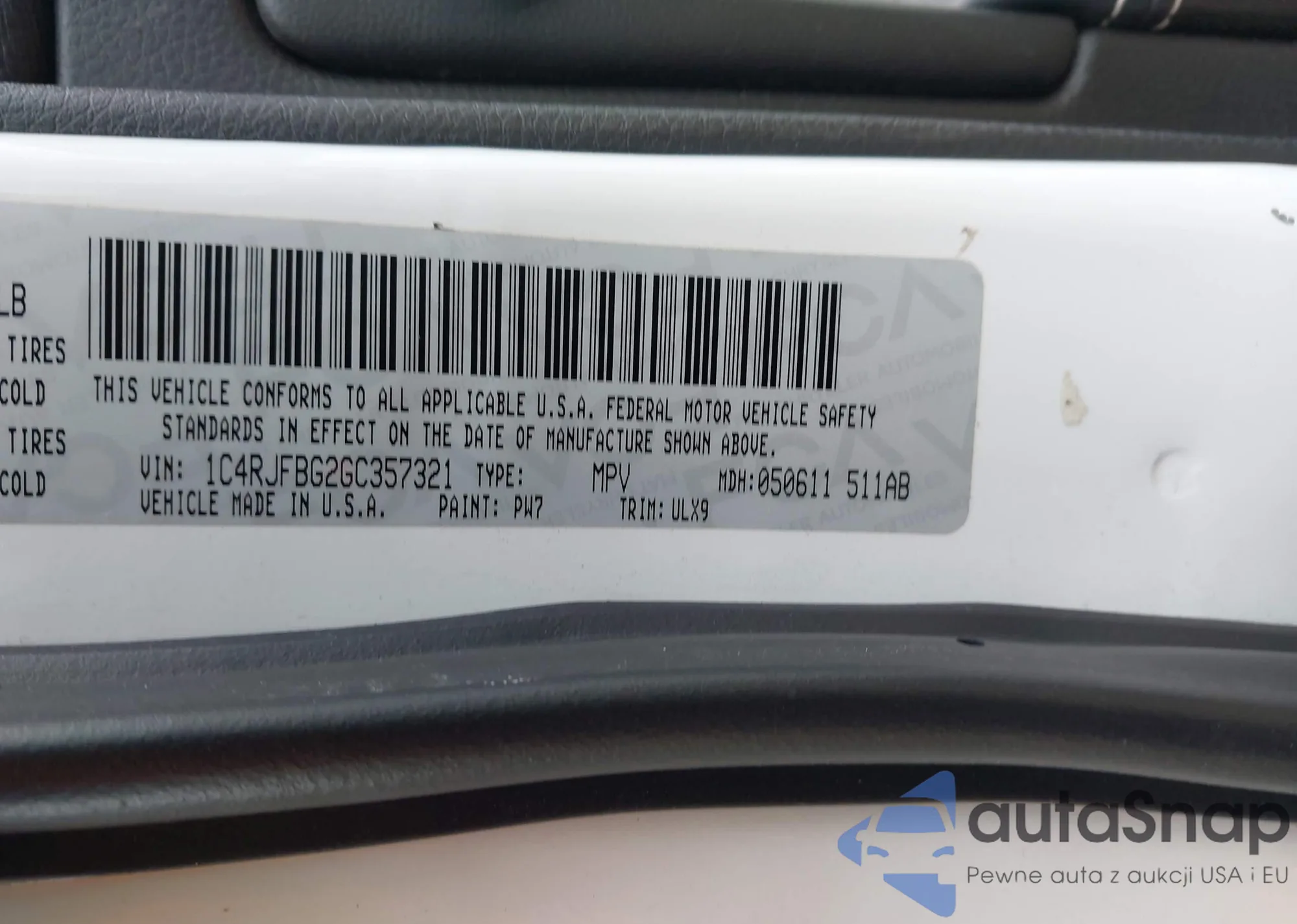 • VIN 1C4RDJAG0HC709633