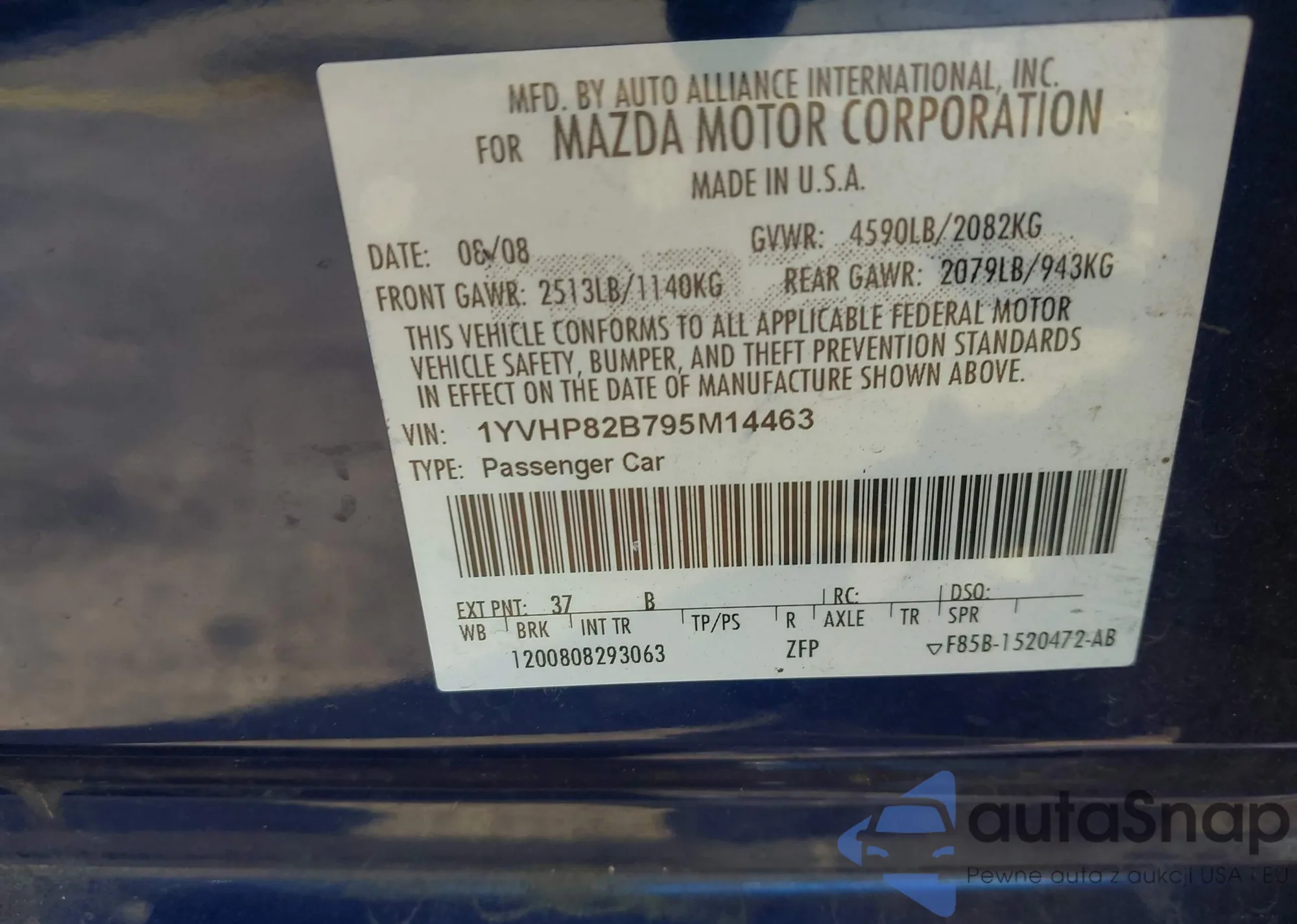 • VIN 1YVHP82B795M14463