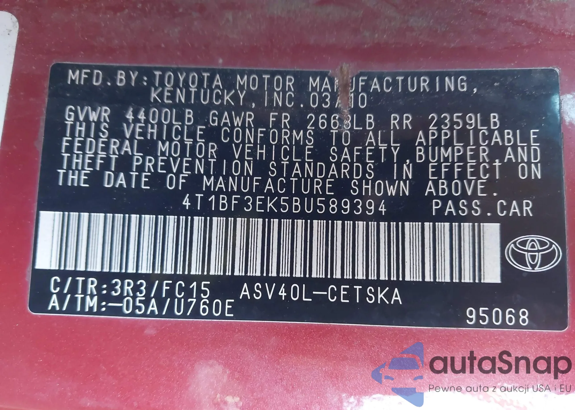 LOT: 44515404 VIN: 2T3DF4DV2BW094930