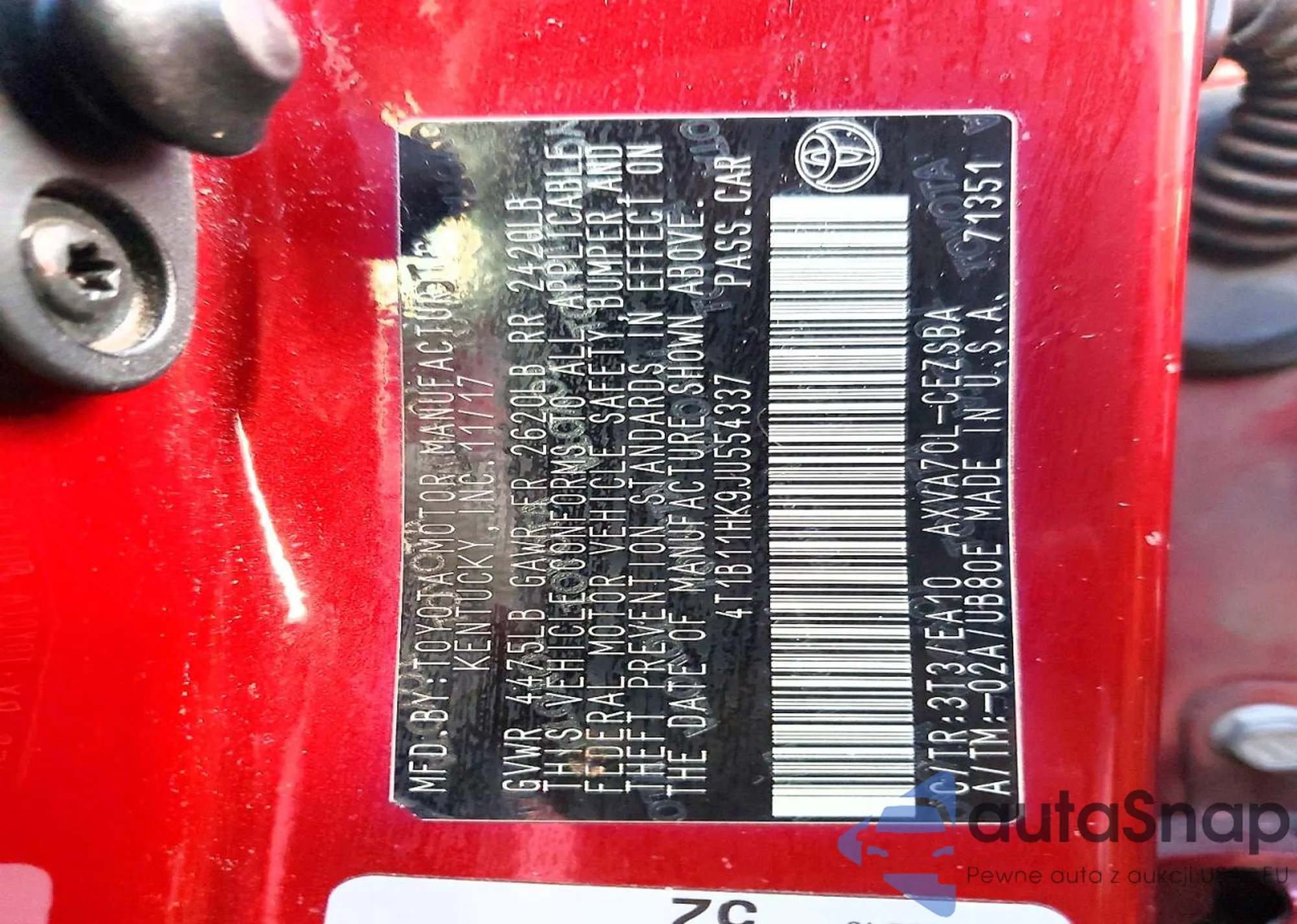 • VIN 4T1B11HK9JU554337