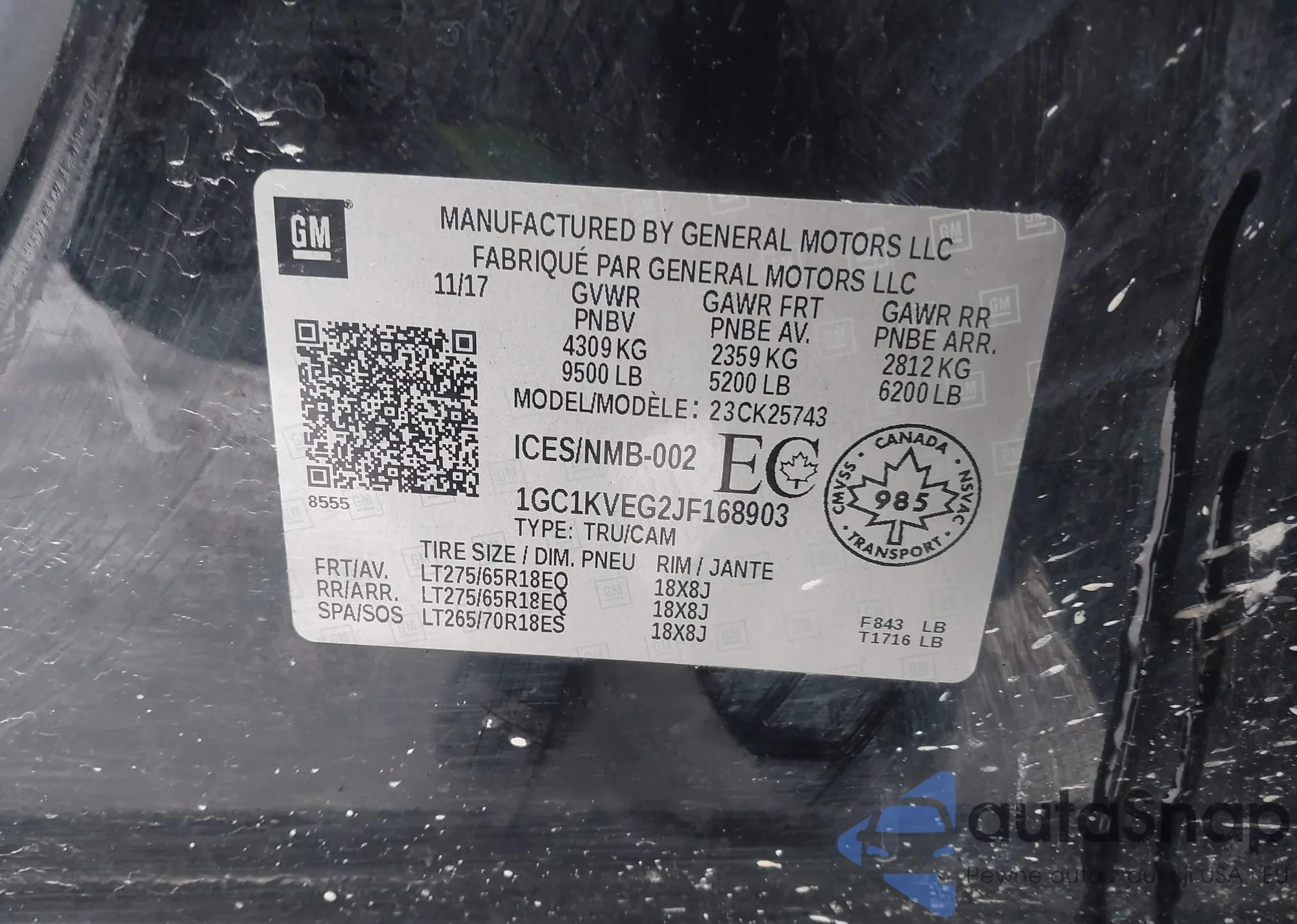 • VIN 3C6TRVAG9GE103650