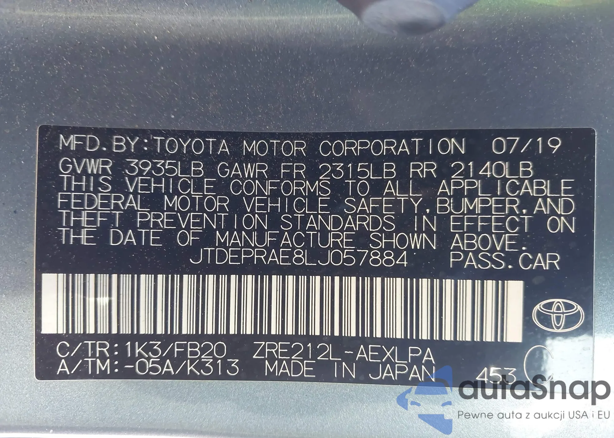 • VIN JTDEPRAE8LJ057884
