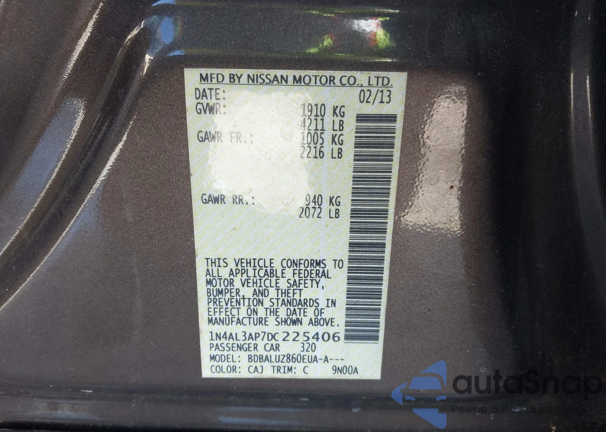 • VIN 1N4AL3AP7DC225406