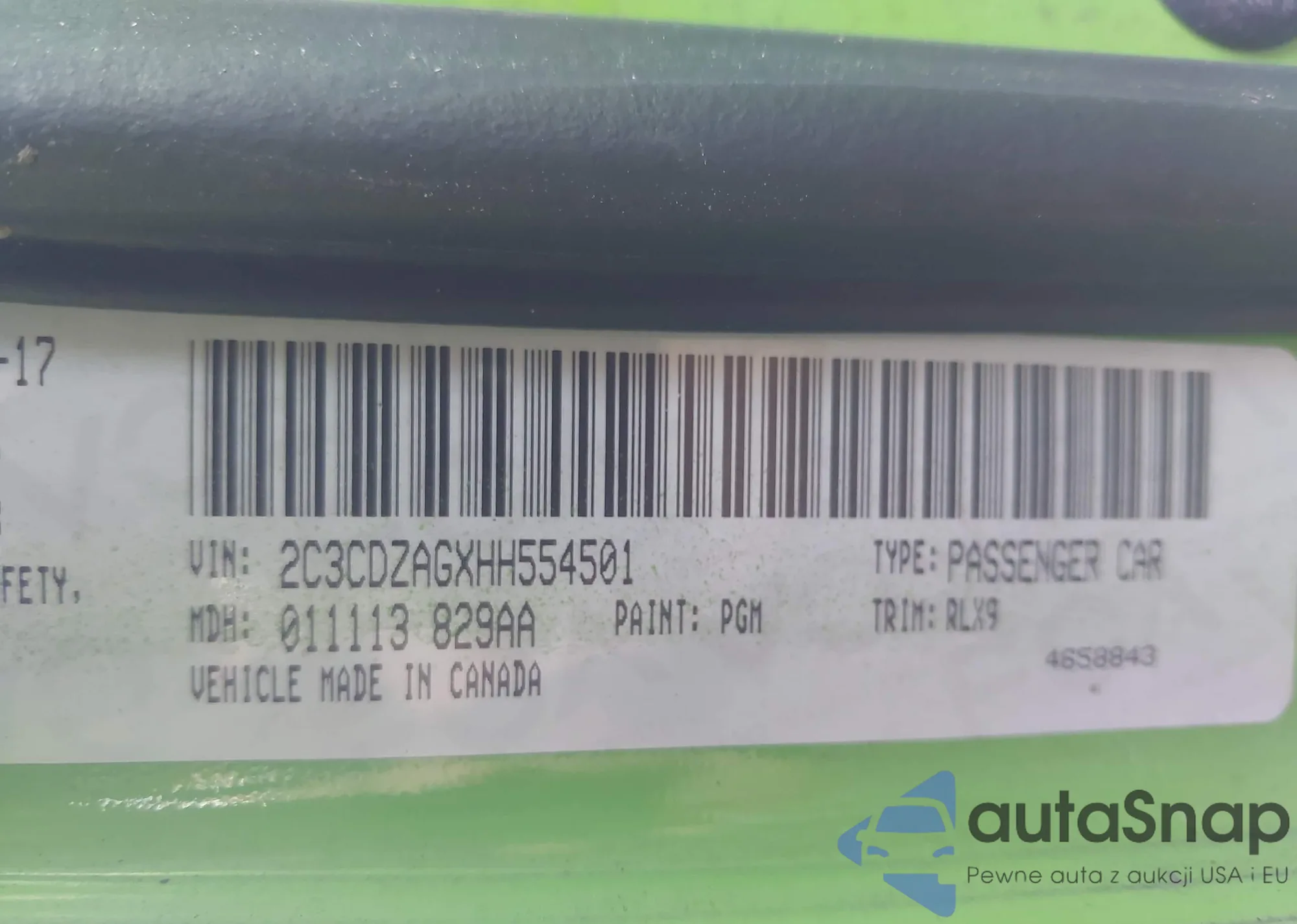 • VIN 2C3CDZAGXHH554501