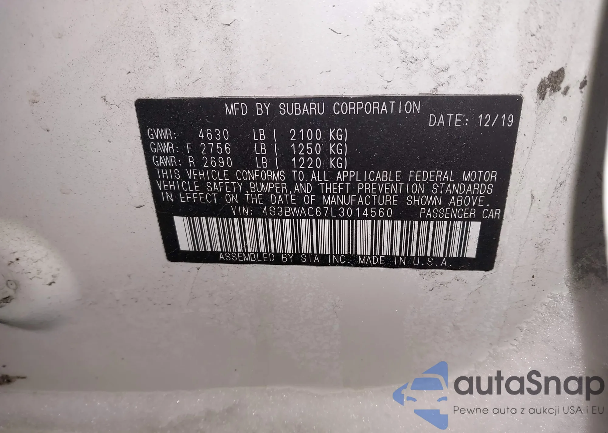 • VIN 4S3BWAC67L3014560