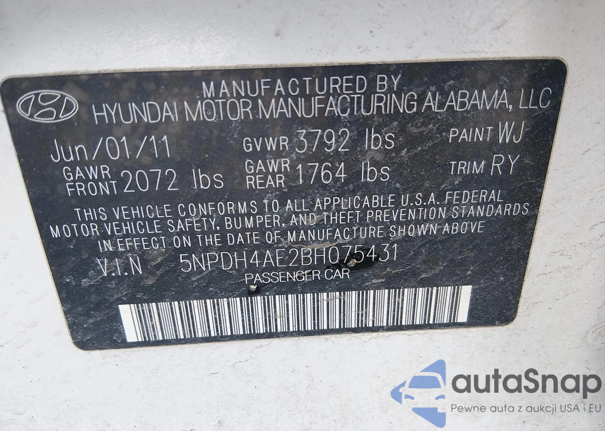 • VIN KMHDH6AE6DU012817