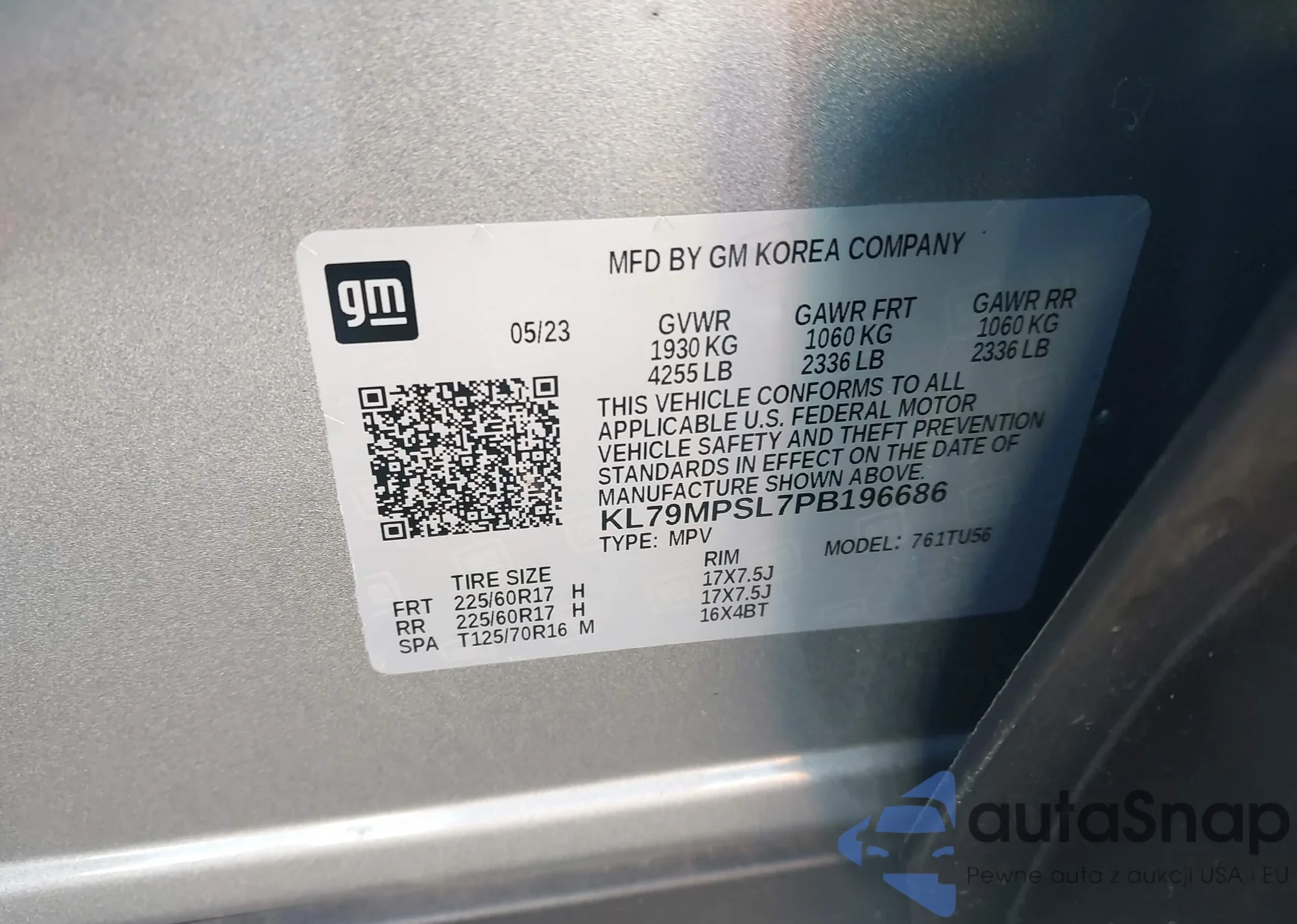 • VIN KL79MPSL7PB196686