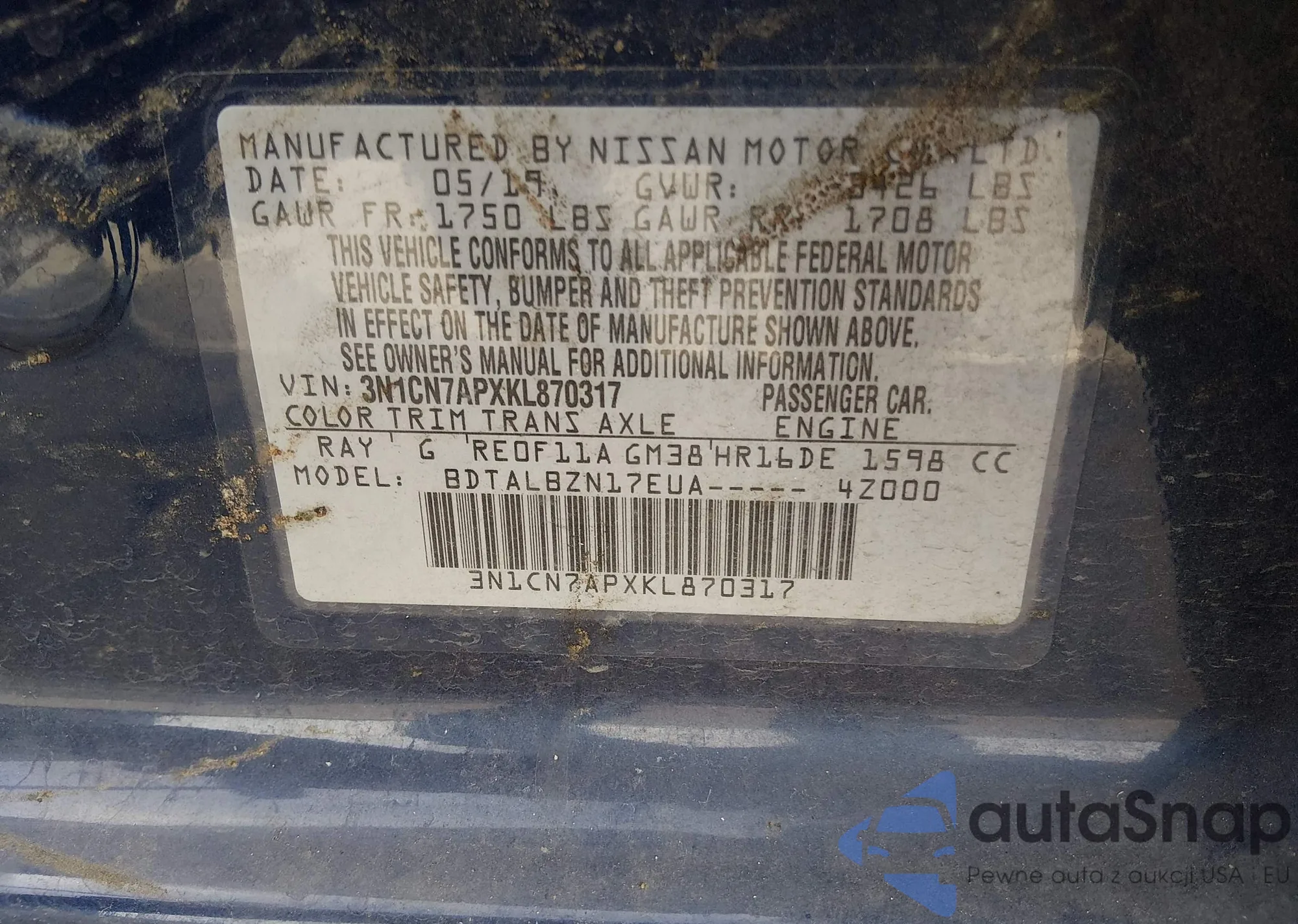 • VIN 3N1AB7AP0DL671859