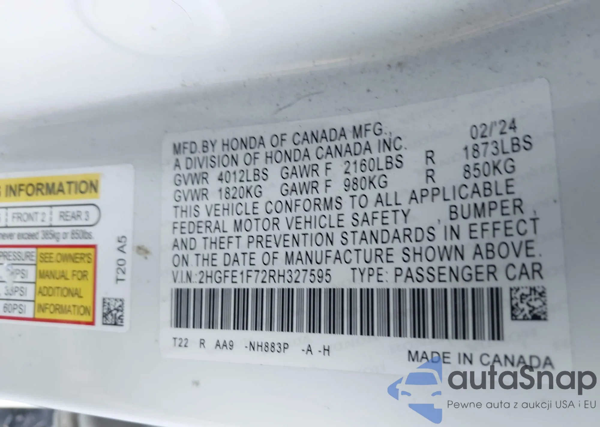 • VIN 2HGFE1F72RH327595
