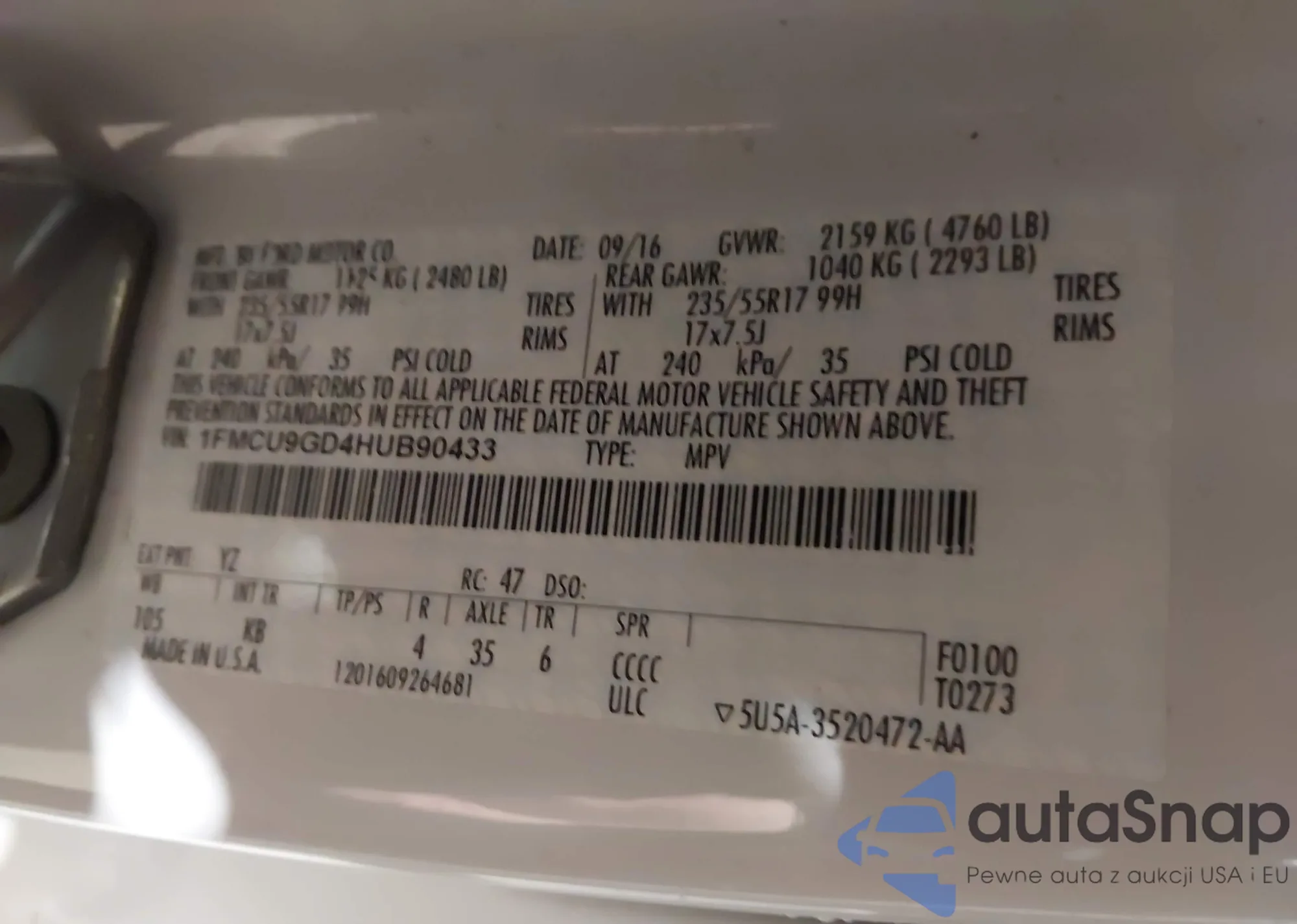 LOT: 44433463 VIN: KNAGM4A73E5479012