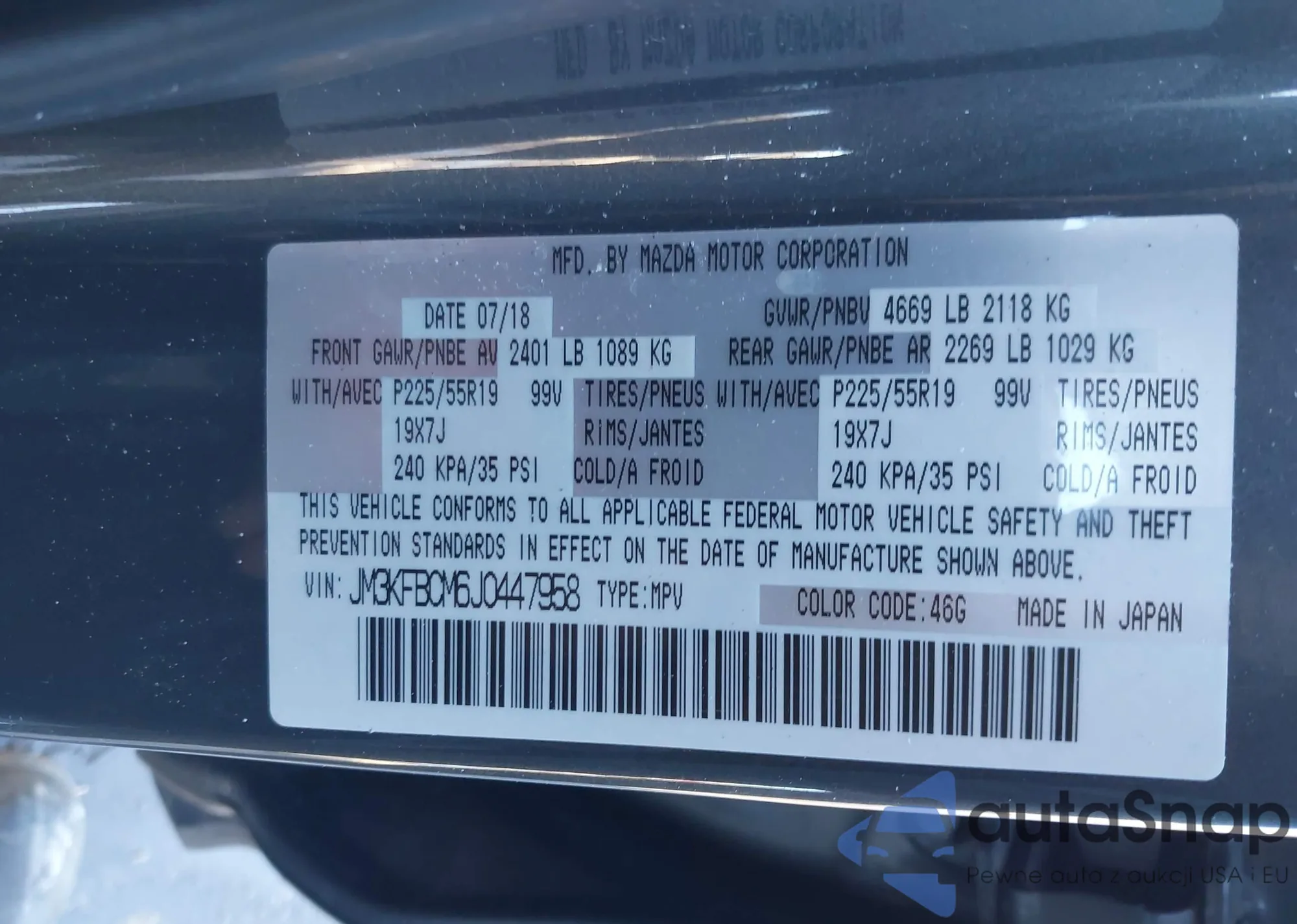 LOT: 44348785 VIN: JM3KFBCM6J0447958
