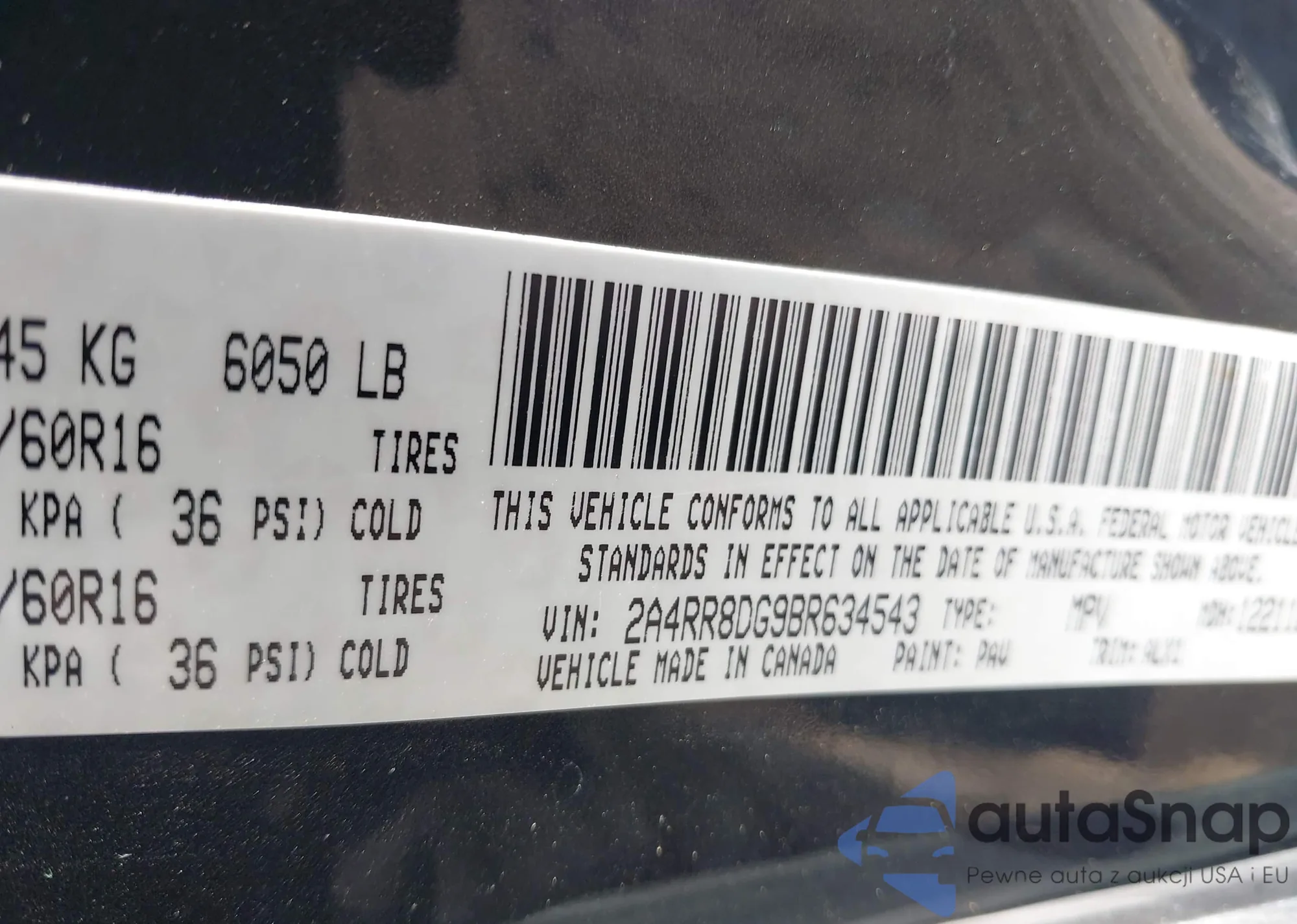 • VIN 2A4RR8DG9BR634543