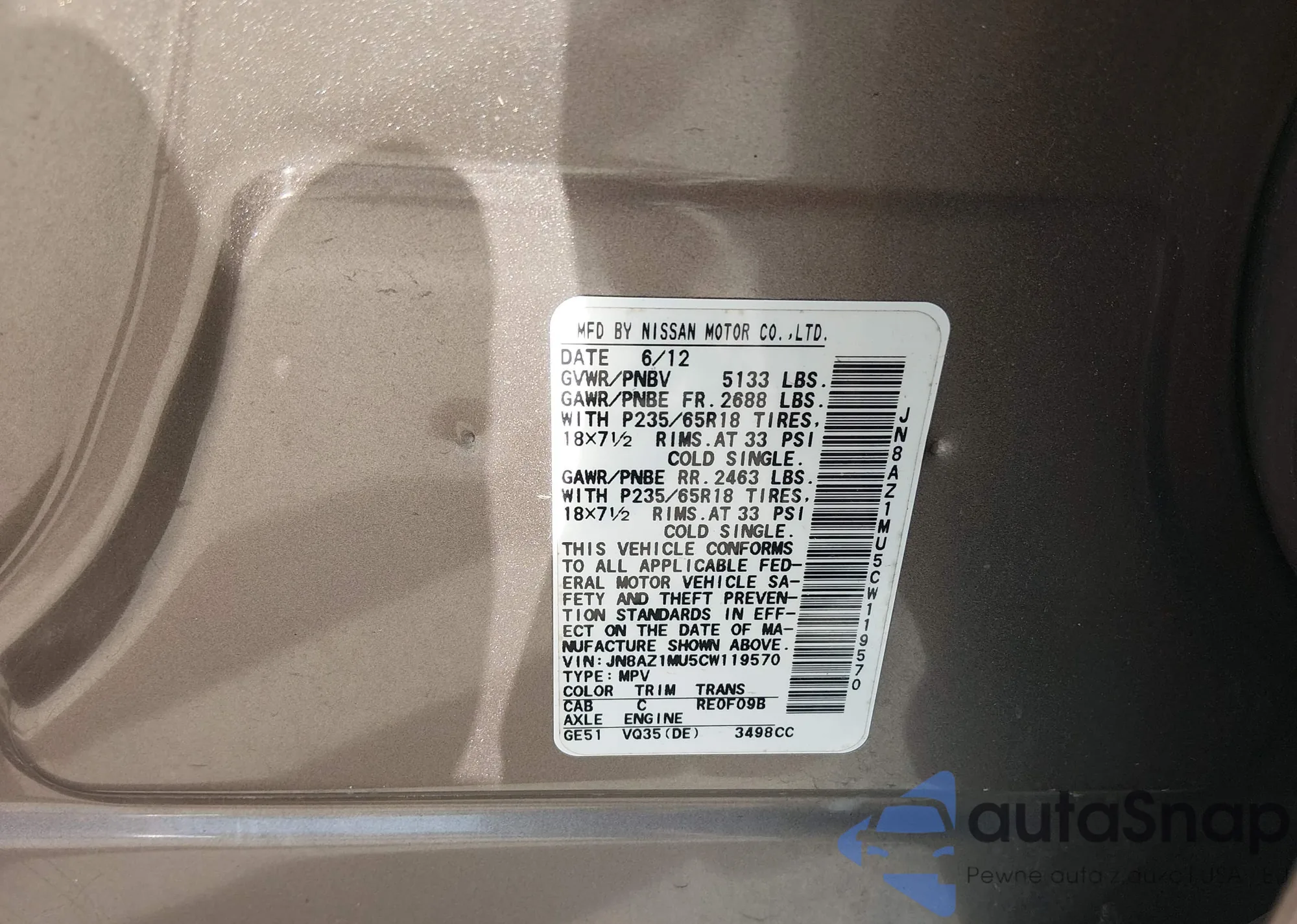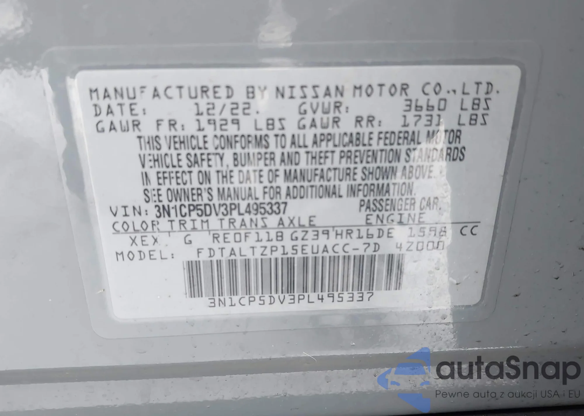 • VIN 3N1CP5DV3PL495337