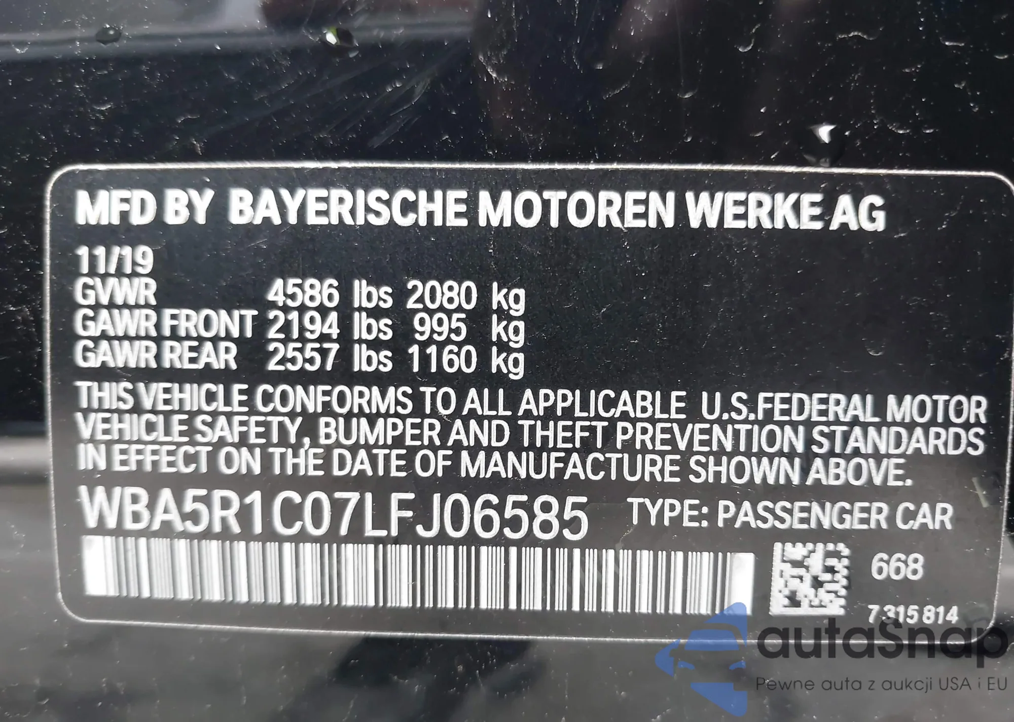 • VIN WBA5R1C07LFJ06585