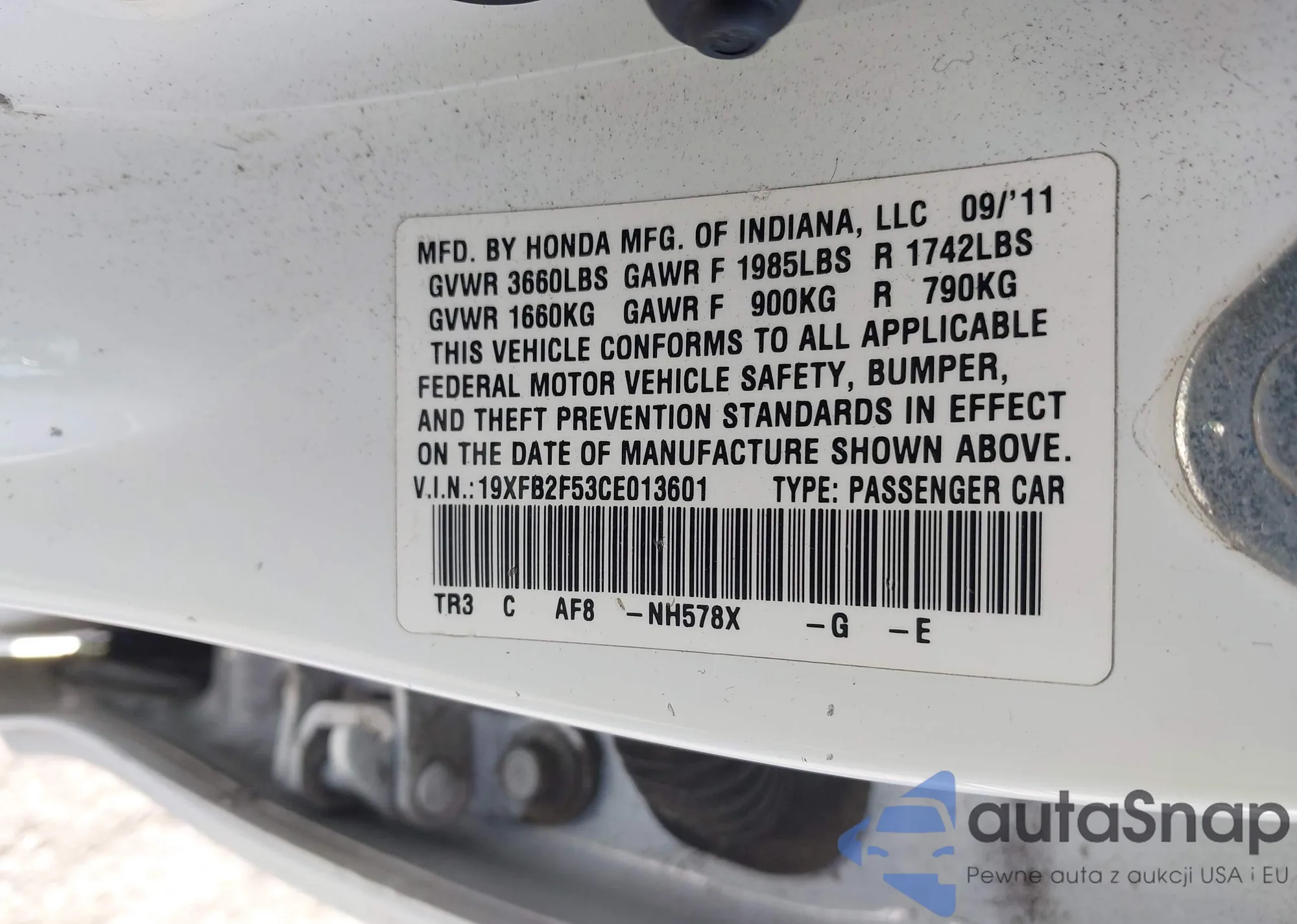 • VIN 5FNRL5H68DB052309