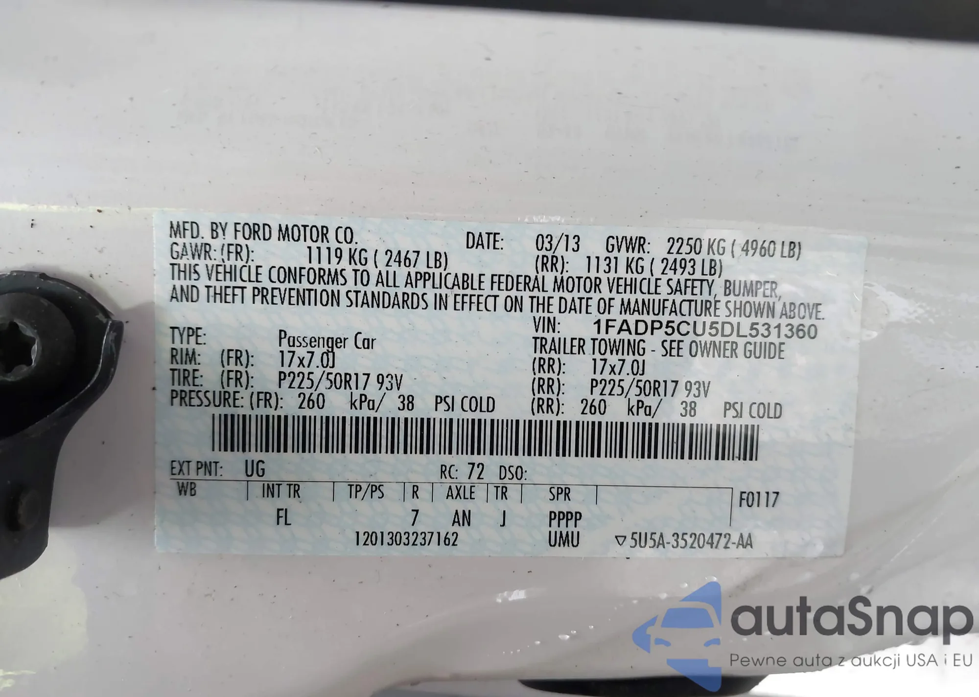 • VIN 1FADP5CU5DL531360