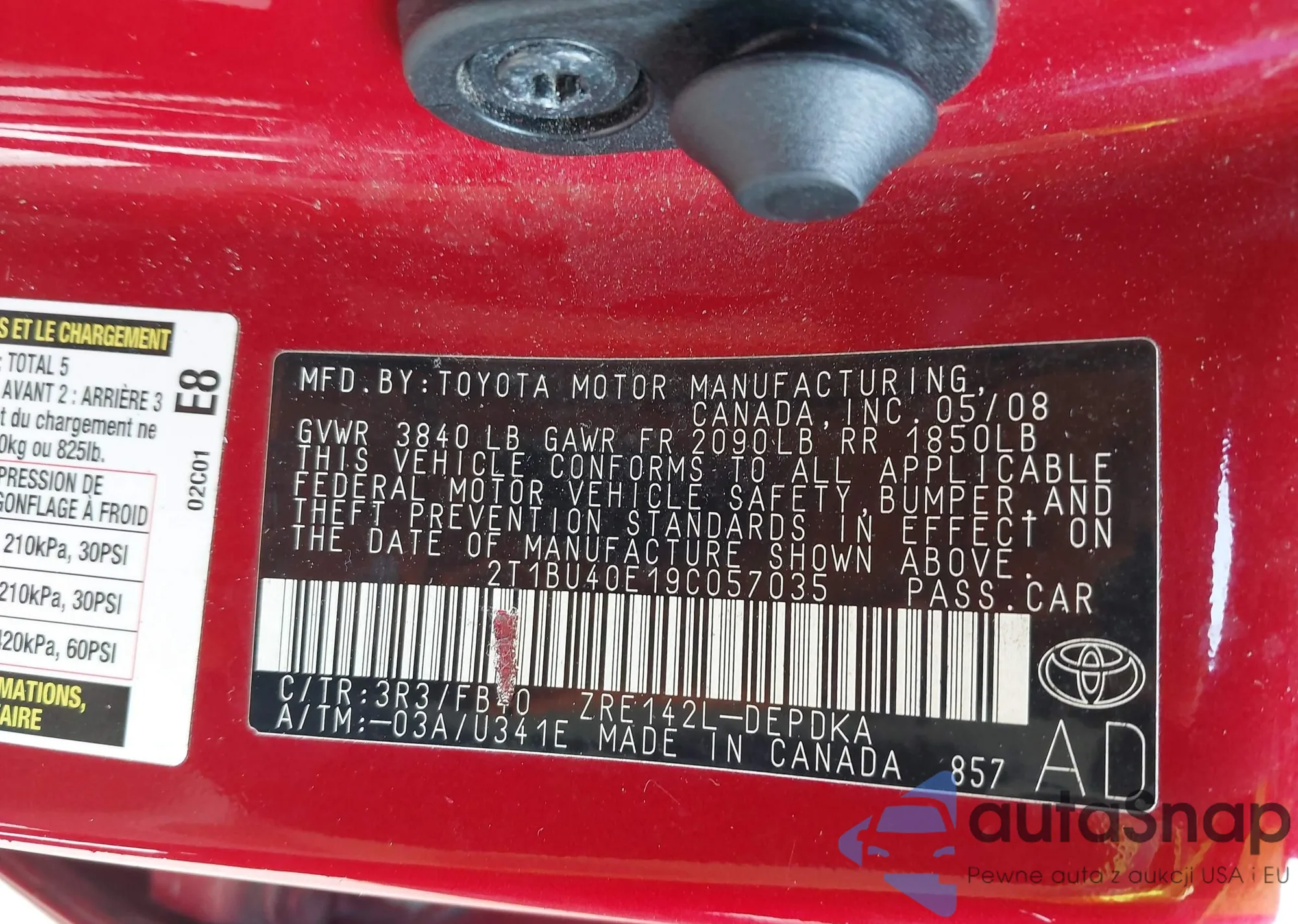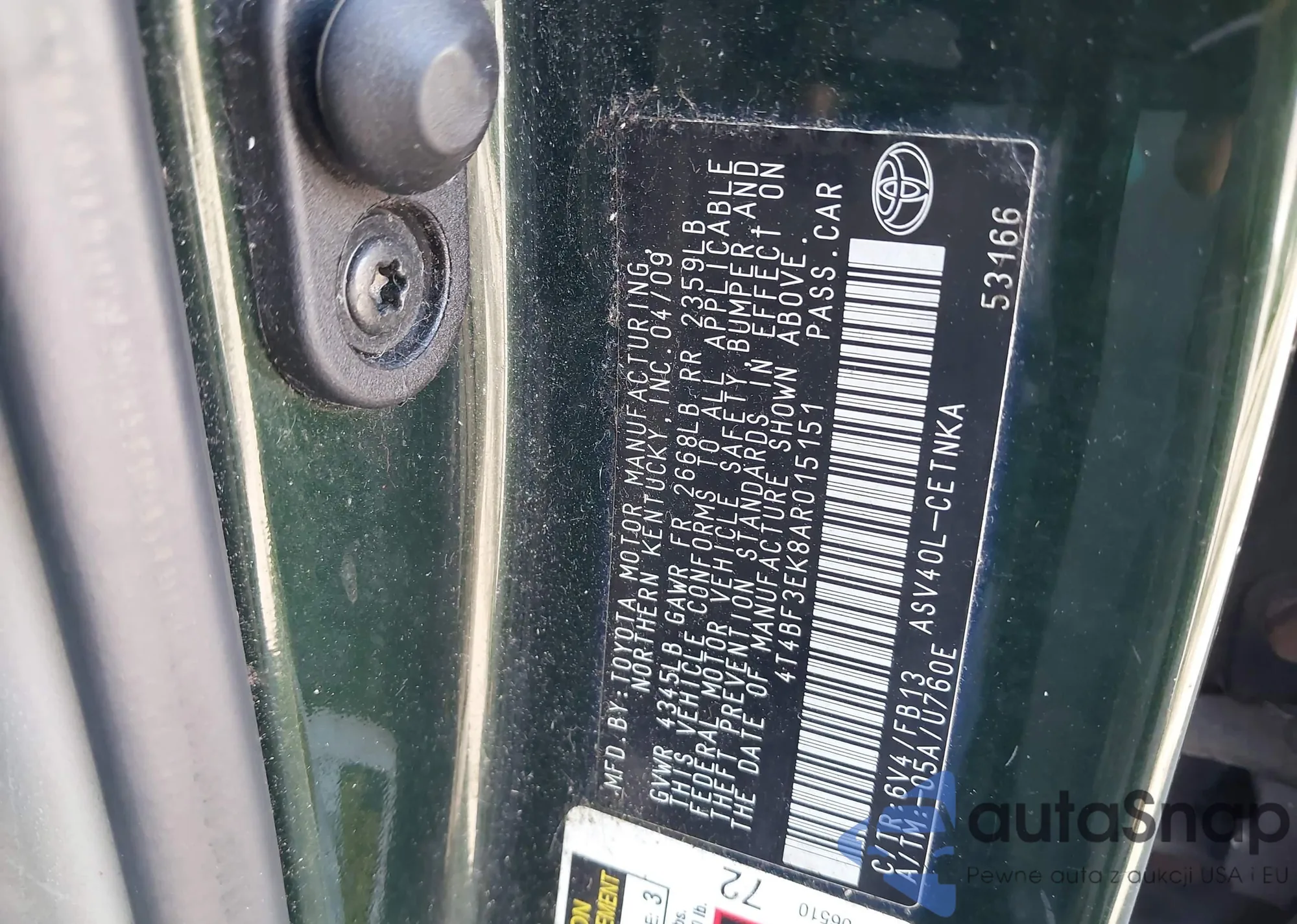 • VIN 4T4BF3EK8AR015151