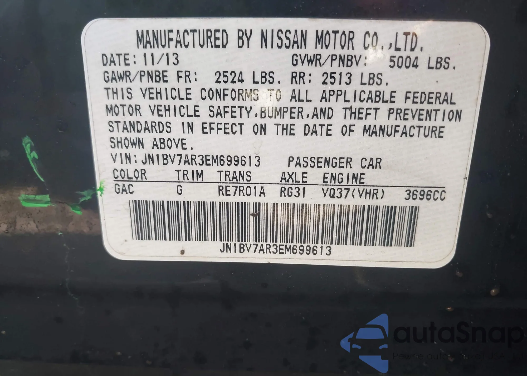 LOT: 44528876 VIN: JN1BV7AR3EM699613