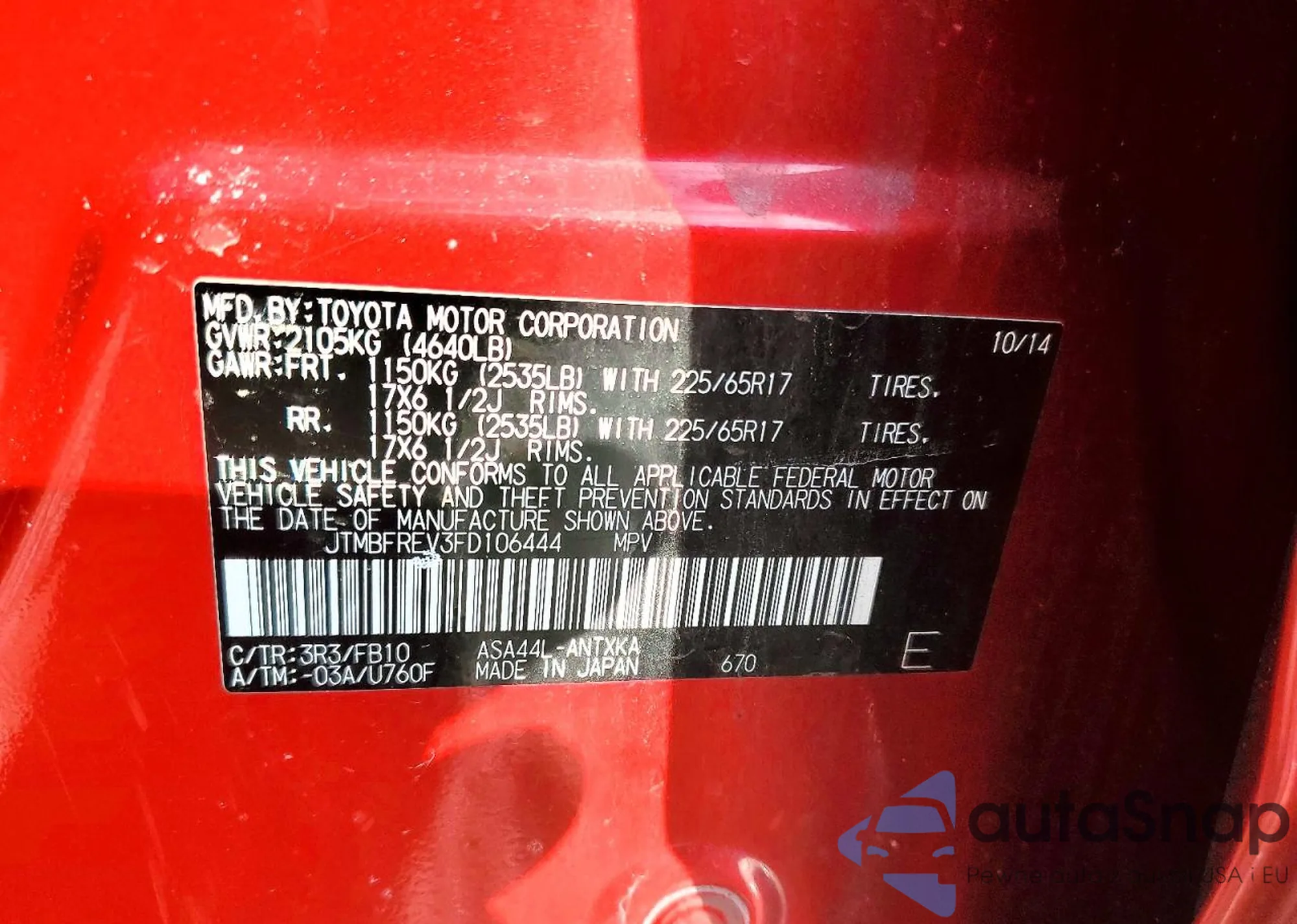 • VIN JTMBFREV3FD106444