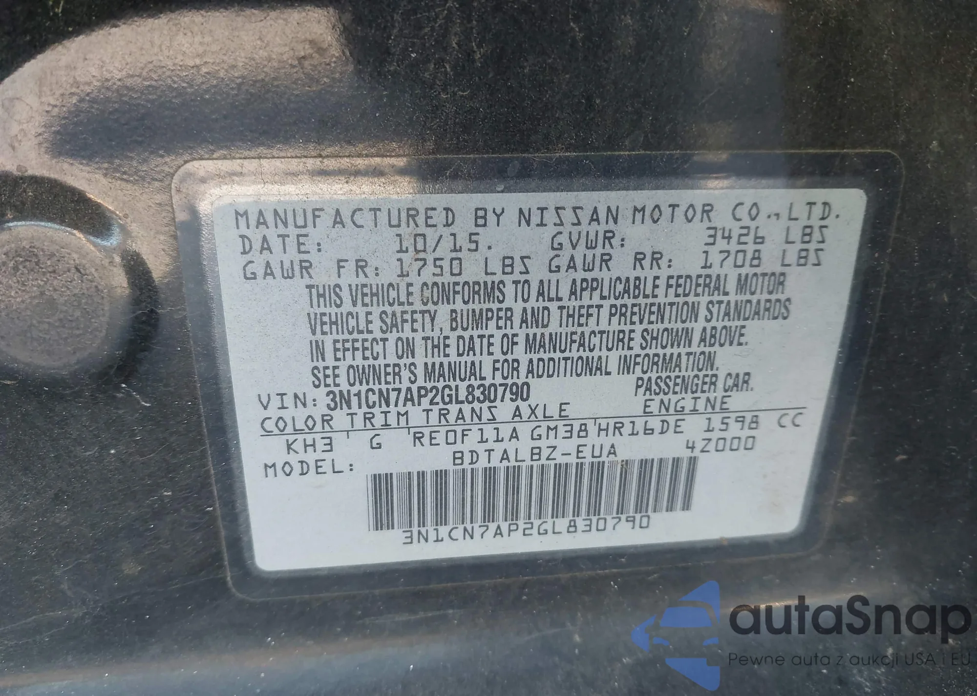 • VIN 3N1CN7AP2GL830790
