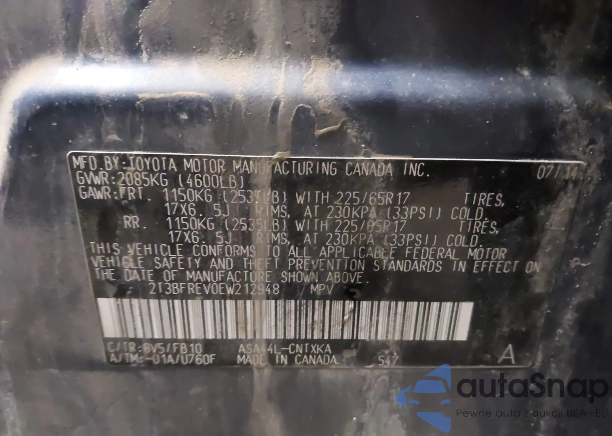 LOT: 44281805 VIN: 2T3BFREV0EW212948