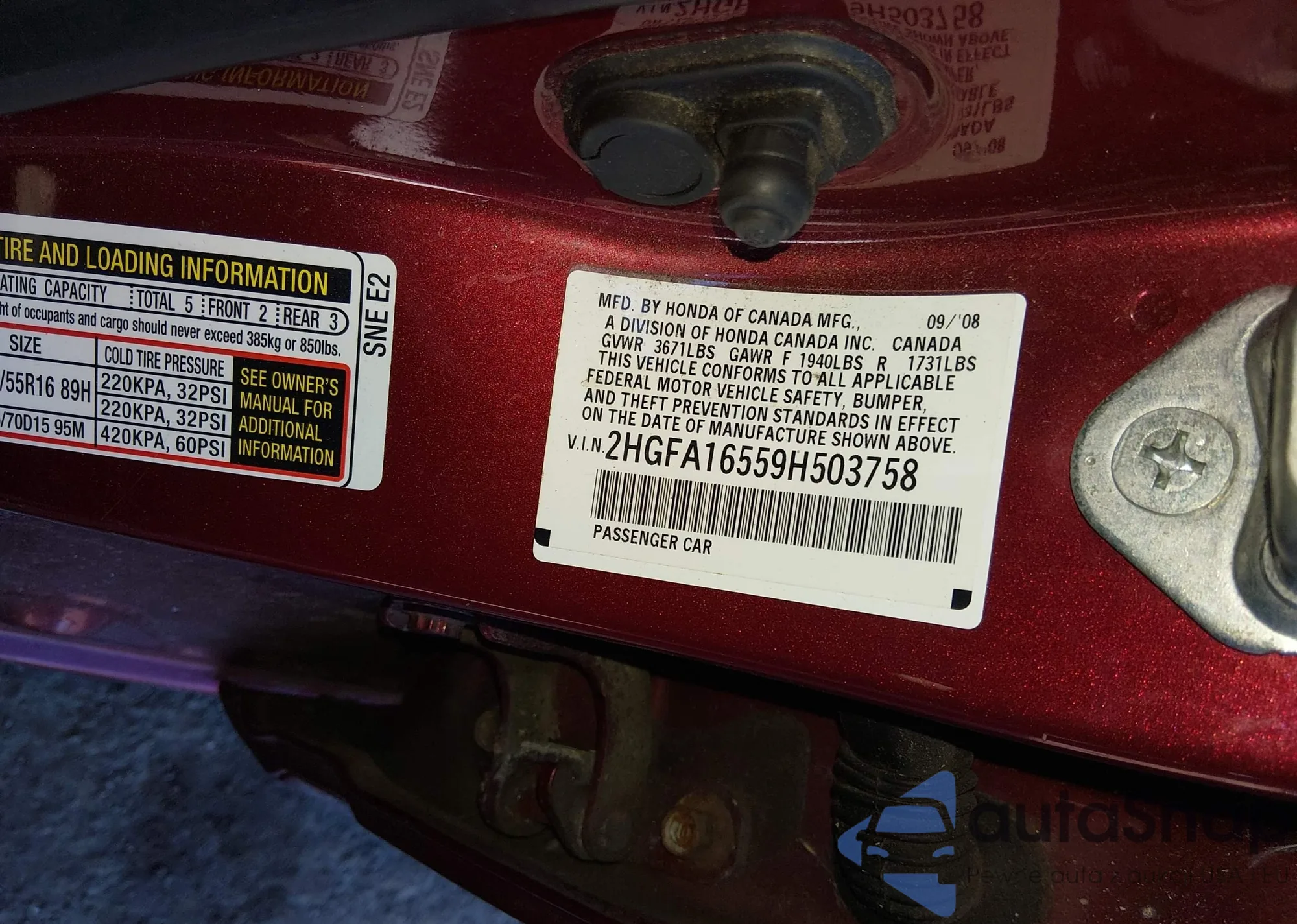 • VIN 2HGFA16559H503758