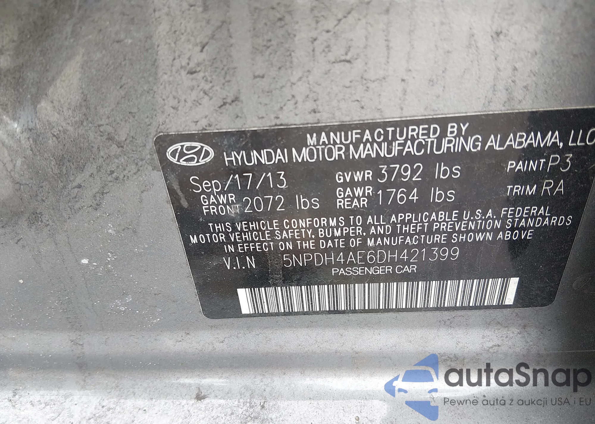• VIN 5NPDH4AE6DH421399