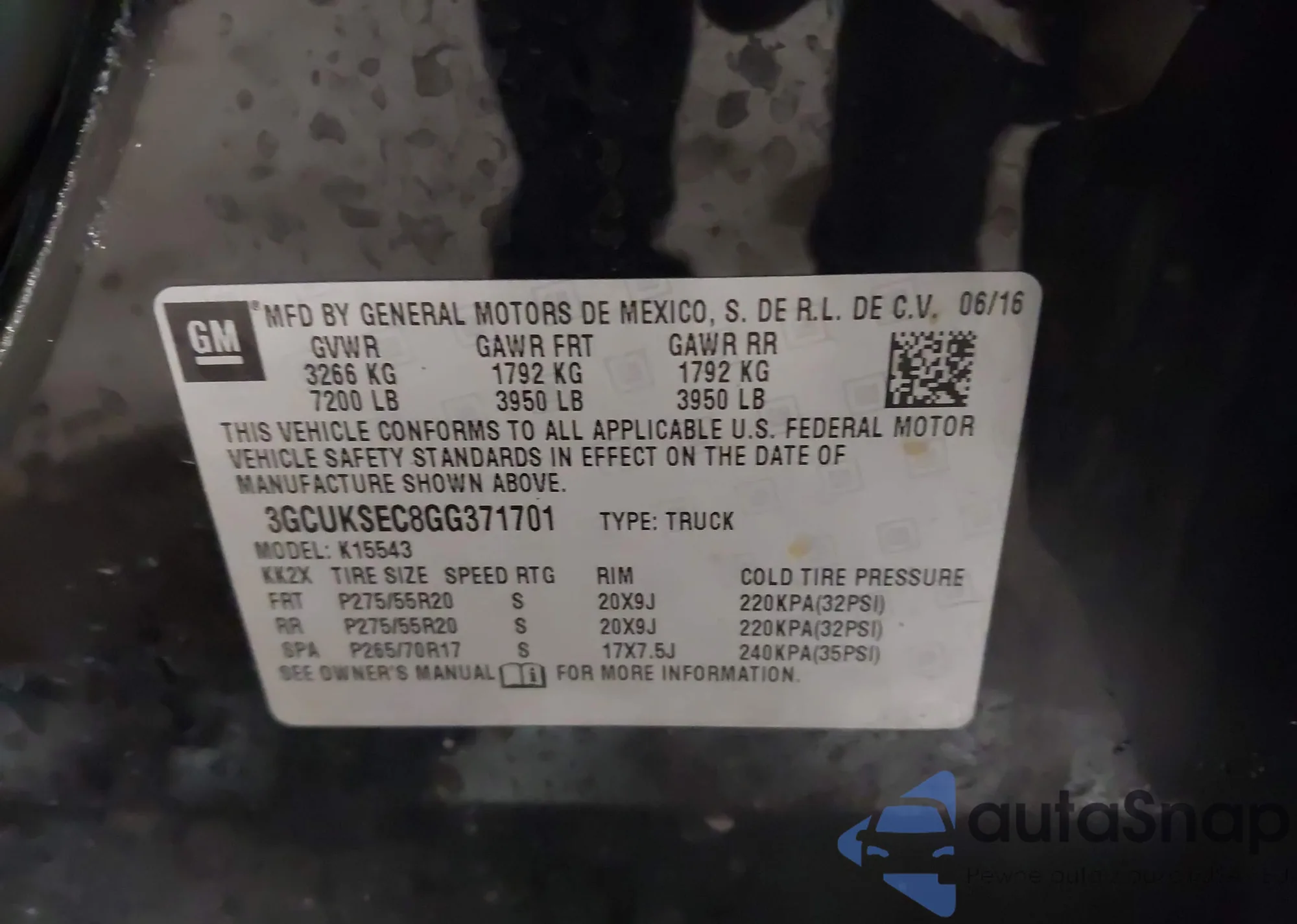 • VIN 4T4BF1FK0GR573359