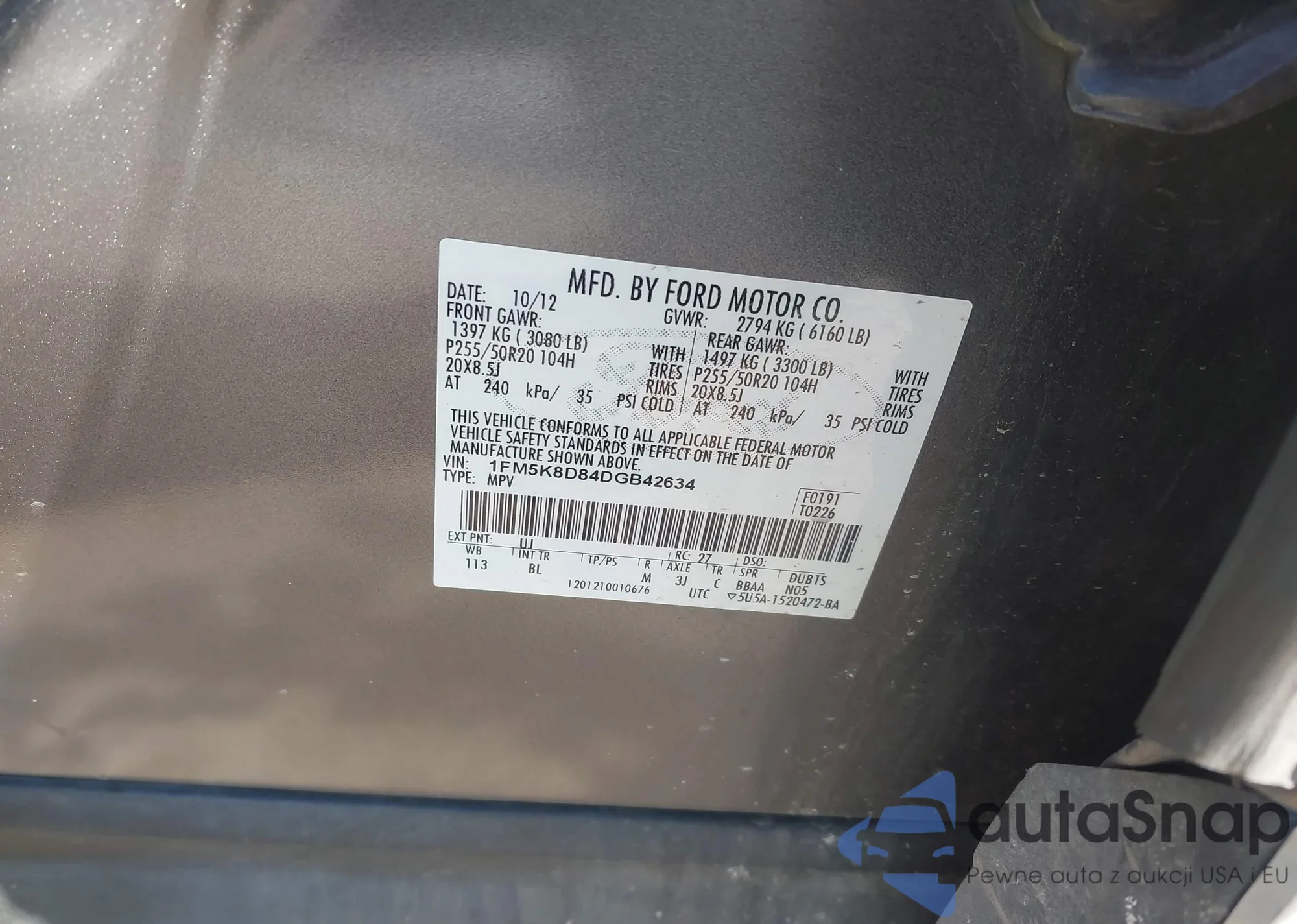 LOT: 44170595 VIN: 1FMCU9G97EUC41284