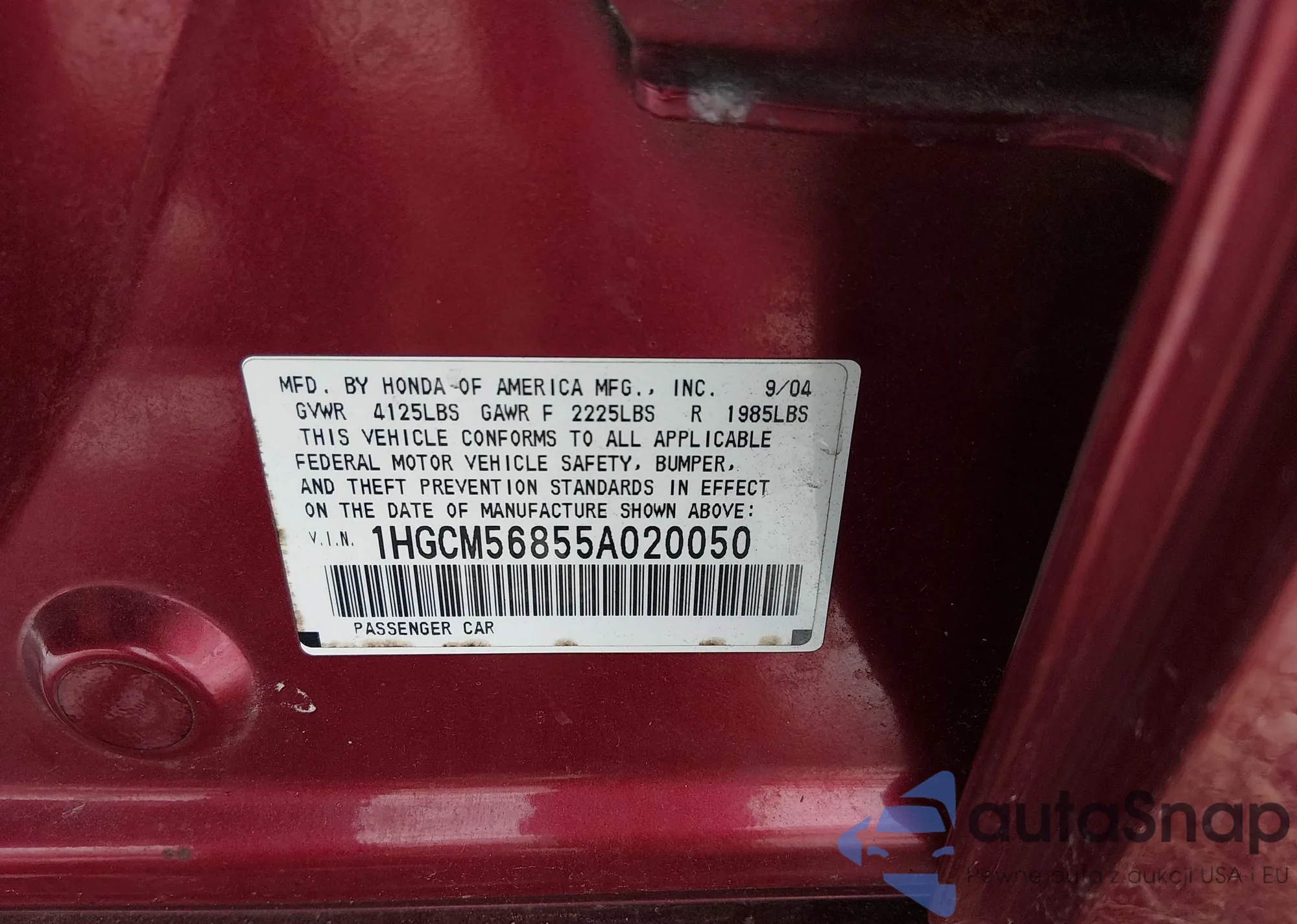 • VIN 5J6TF2H59CL008991