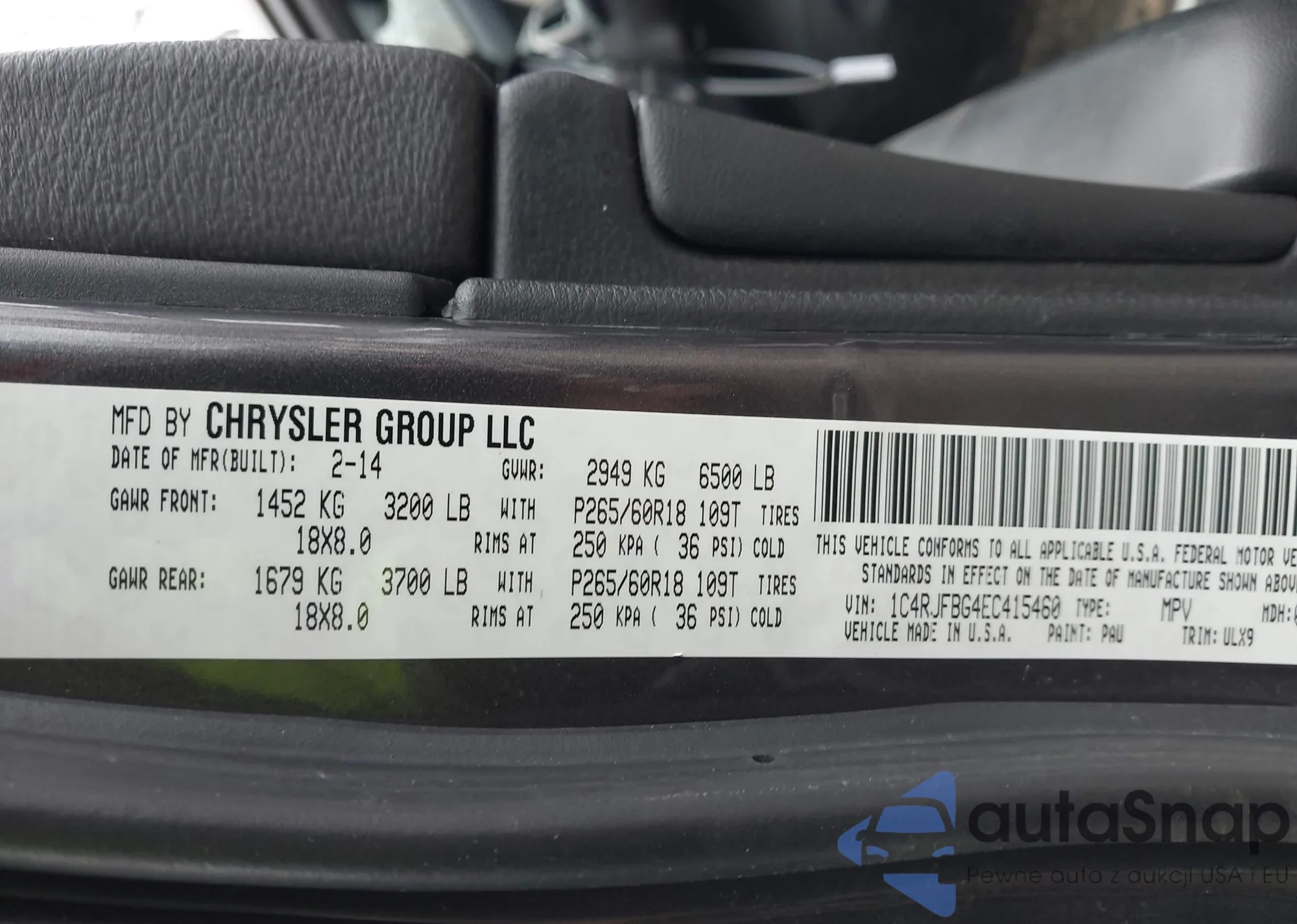 • VIN 1C4RJFBG4EC415460