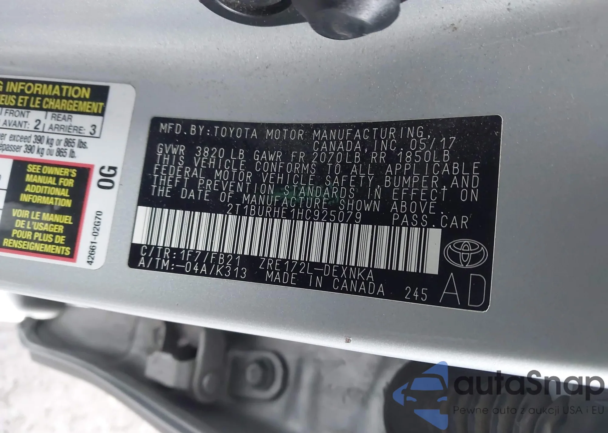 • VIN 2T1BURHE1HC925079