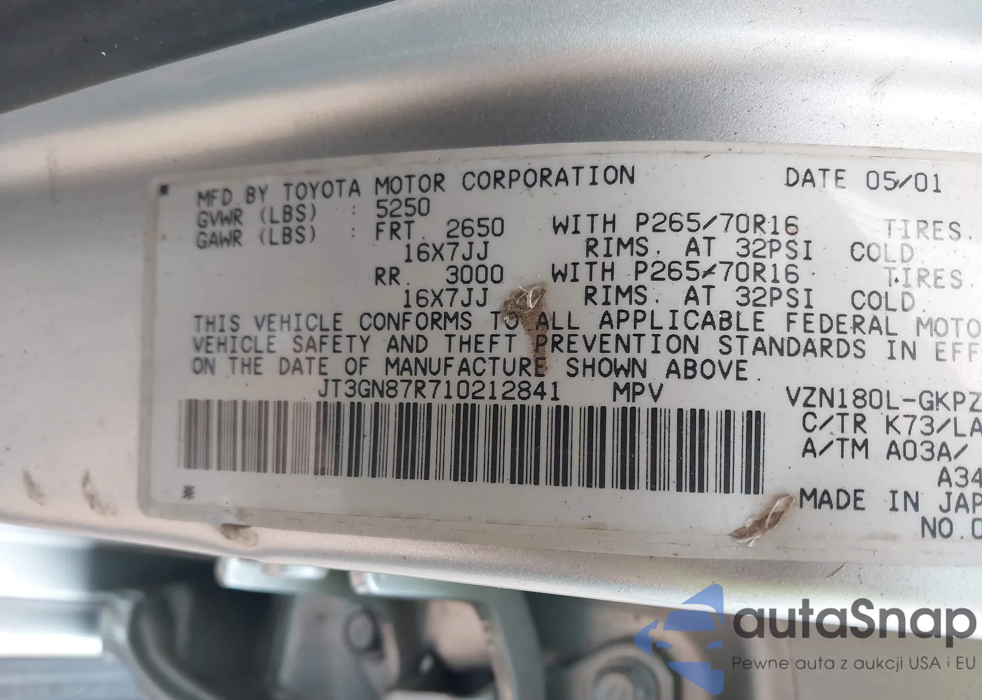 LOT: 44519072 VIN: JT3GN87R710212841