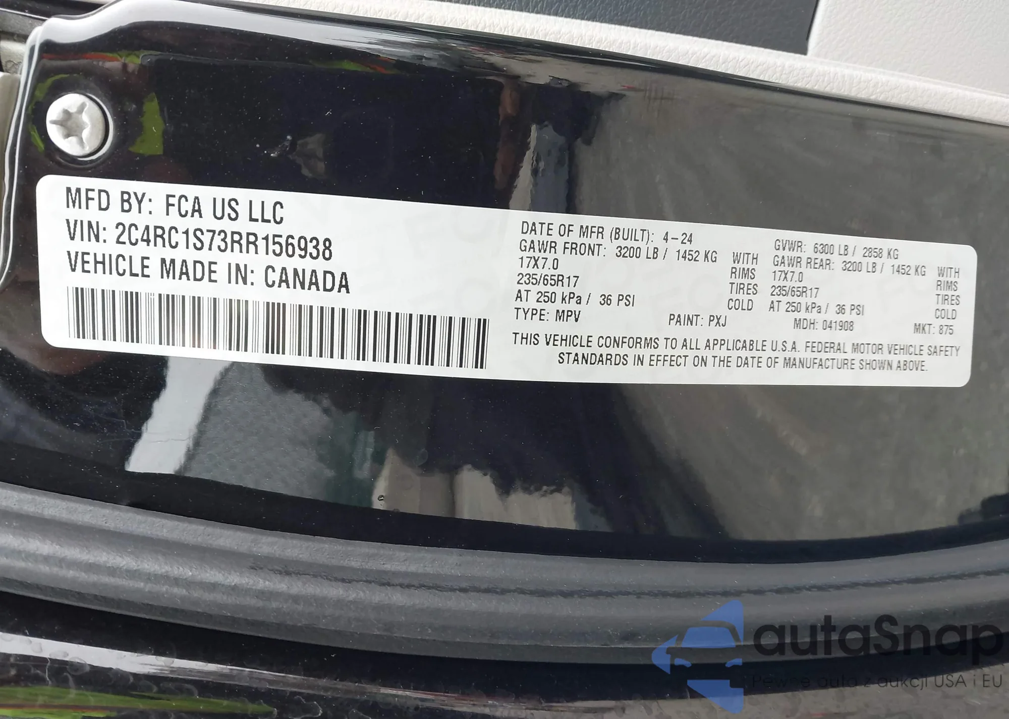 • VIN 5J6RM4H72CL053896